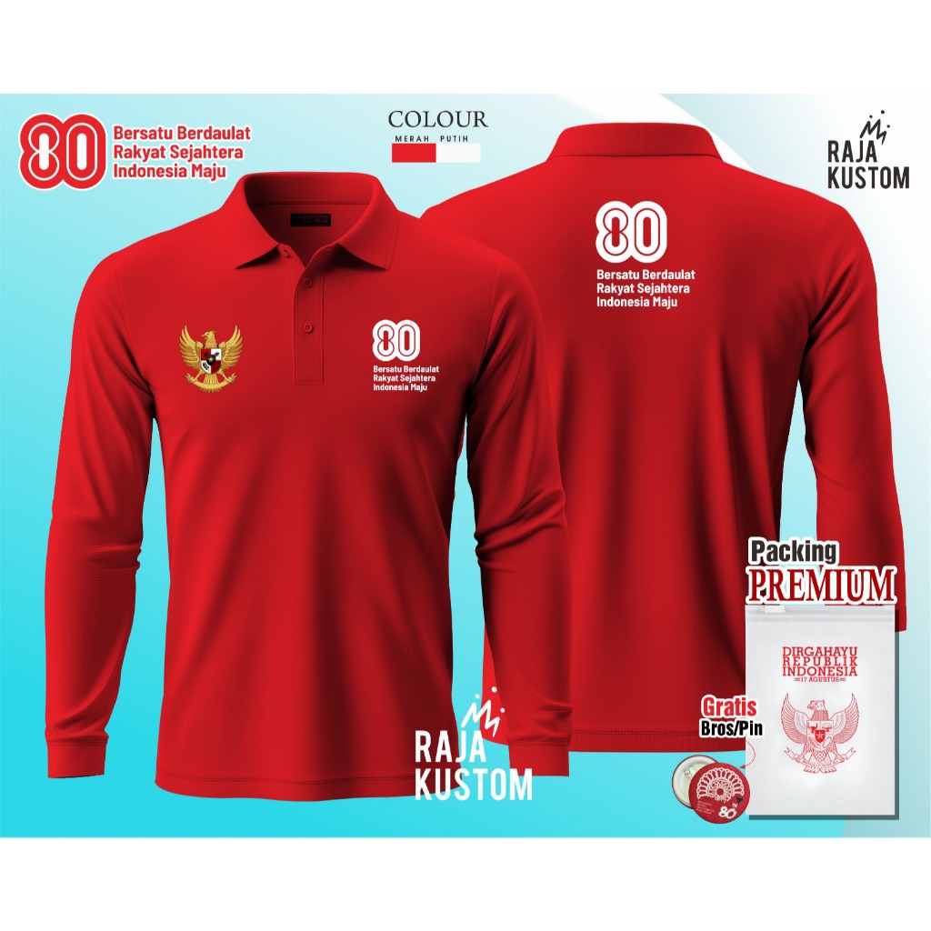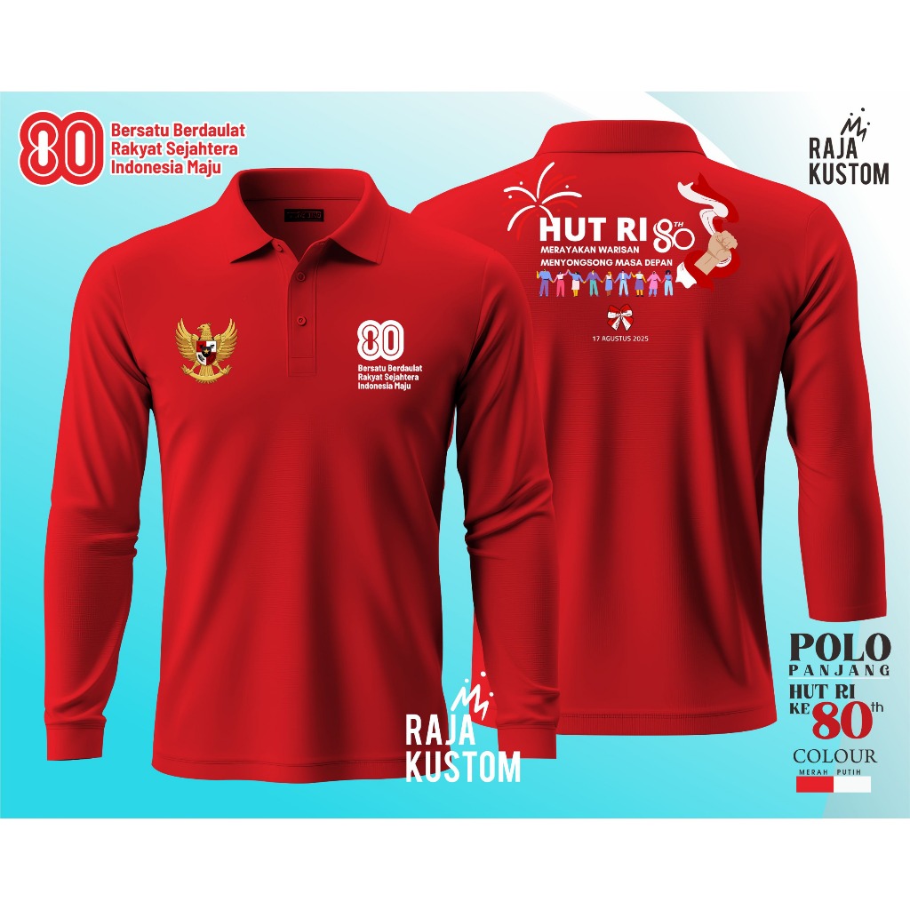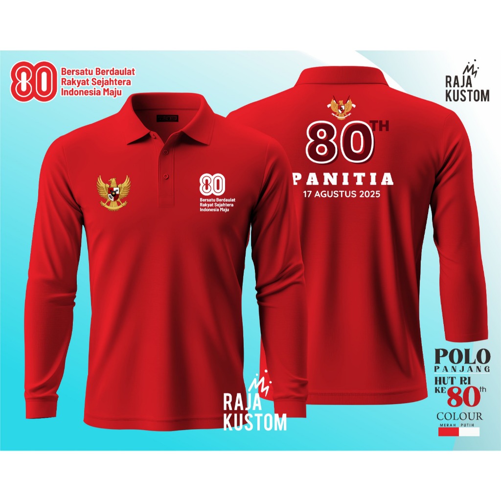 POLO 17 AGUSTUS 2025 HUT RI KE 80 MERAH PUTIH KEMERDEKAAN INDONESIA LENGAN PANJANG DEWASA PREMIUM