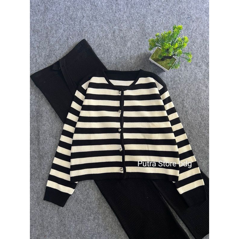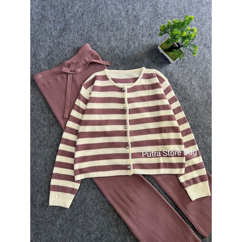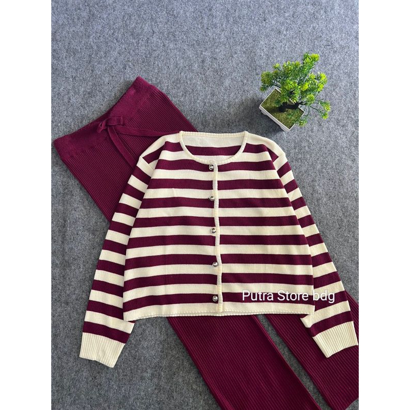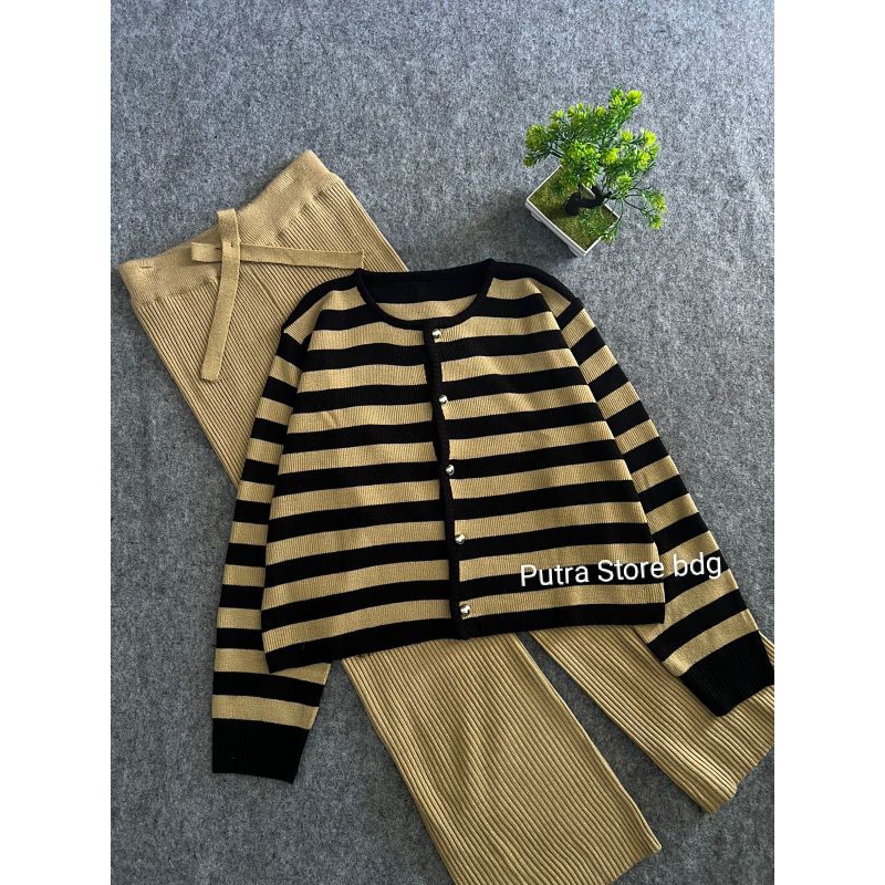 One Set Calya Outer Cardi Crop + Kulot Rajut Premium