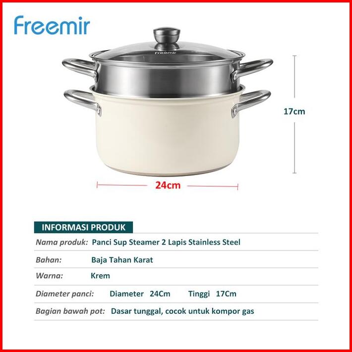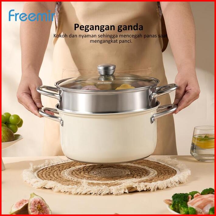 Baru Freemir Panci Kukus 2 Susun 24cm Panci Stainless Steel Panci Anti Karat Anti Lengket Multifungsi