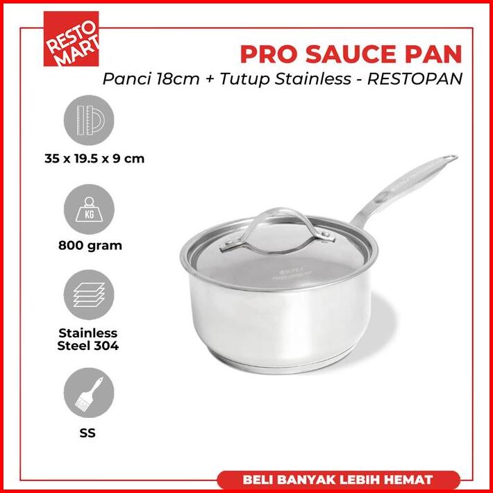 Pro Sauce Pan 18 Cm Lid Restopan By Supra Stainless Steel 304 1011489