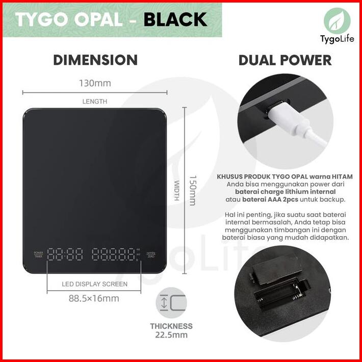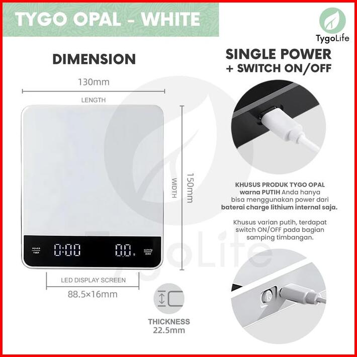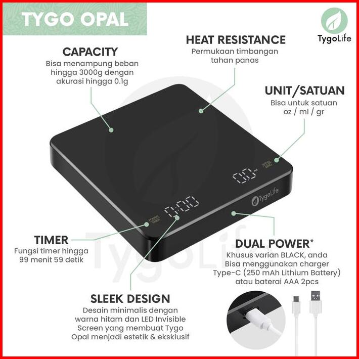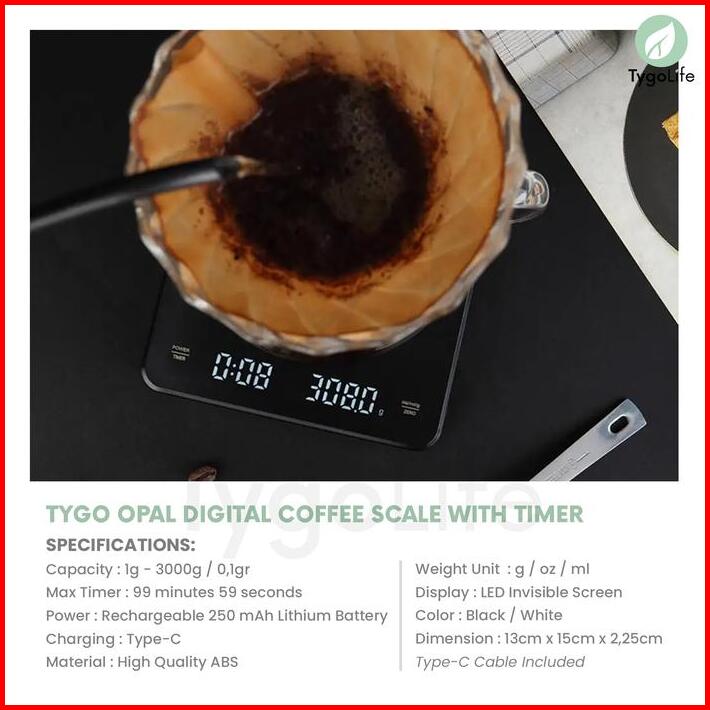 Tygo Opal Digital Coffee Scale With Timer V60 Drip Coffee Timbangan Digital Dapur Kitchen Kopi