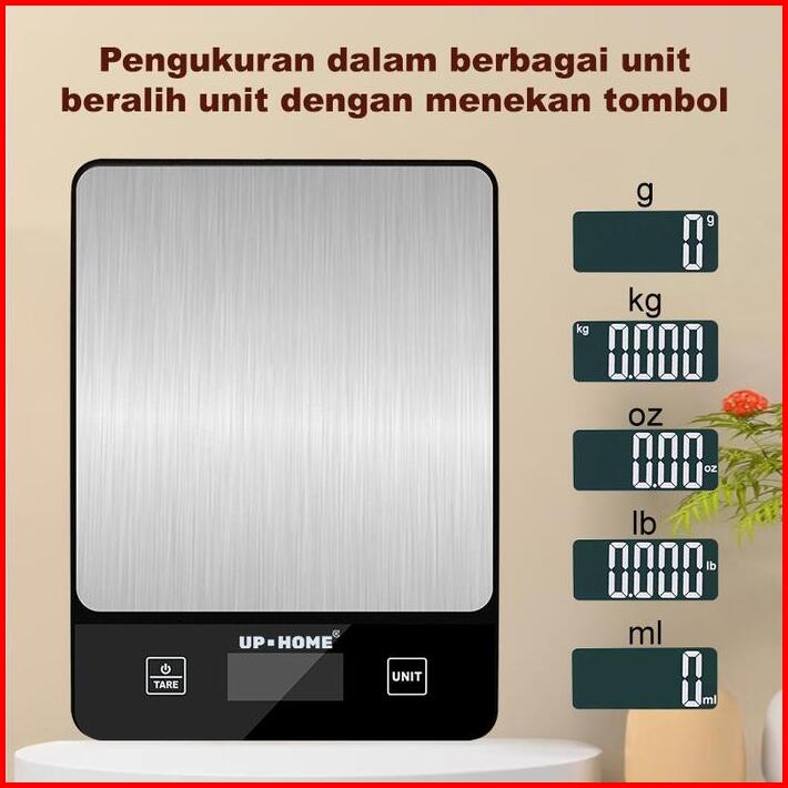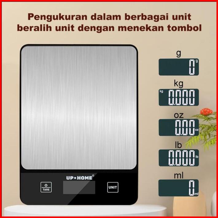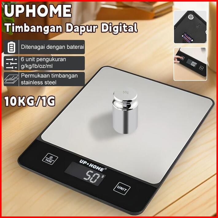 Uphome Timbangan Dapur Digital 10kg 1g Stainless Steel With Tare 5 Mode G Kg Oz Lb Ml Timbangan Kue Timbangan