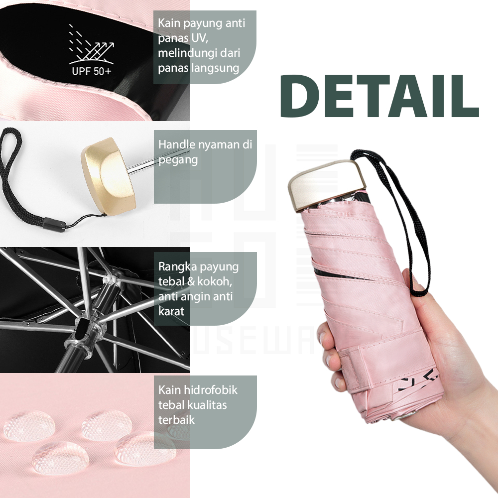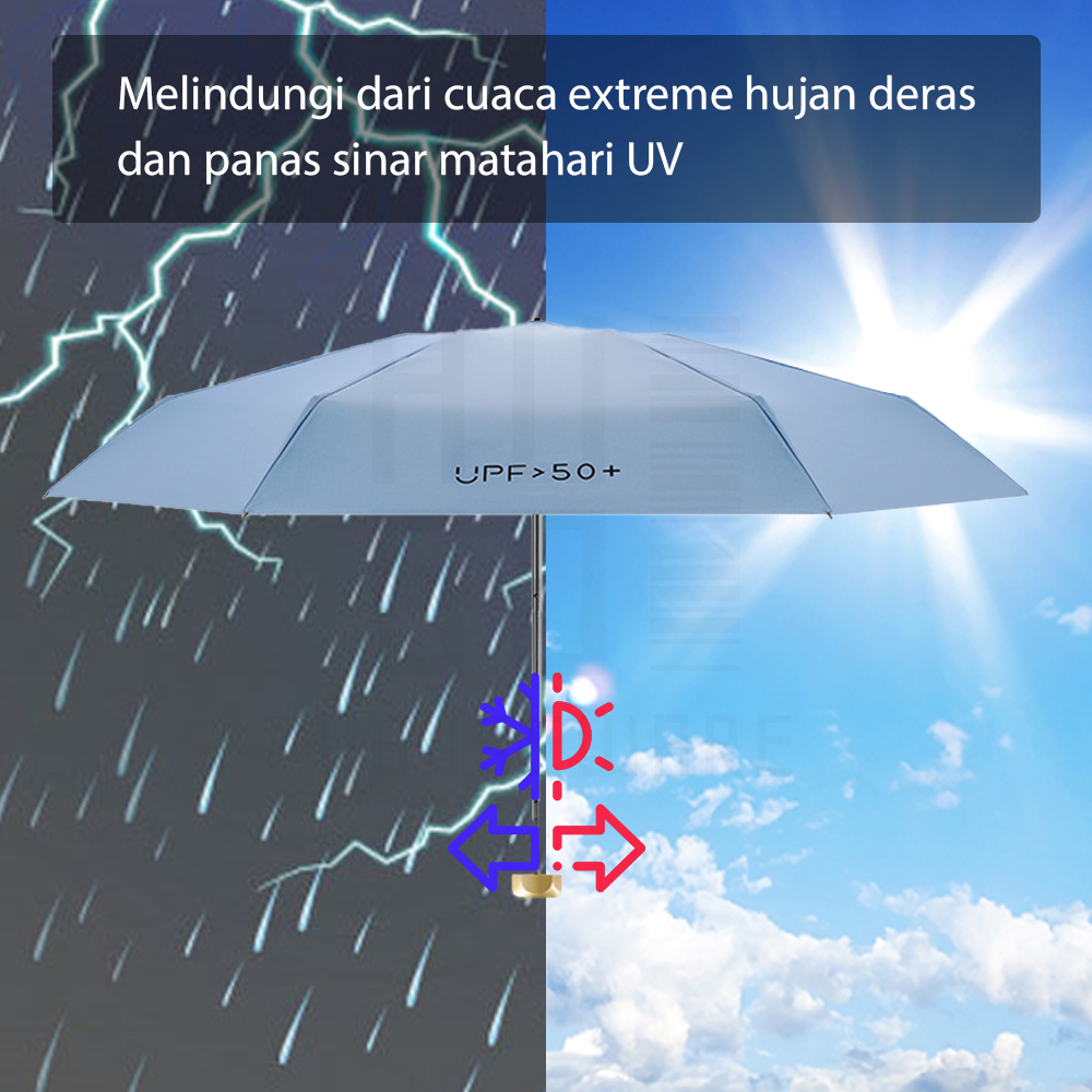HUGO Payung Lipat Mini Anti UV Sinar Matahari Payung Mini Polos Portable Cute Umbrella Hampers Gift Premium