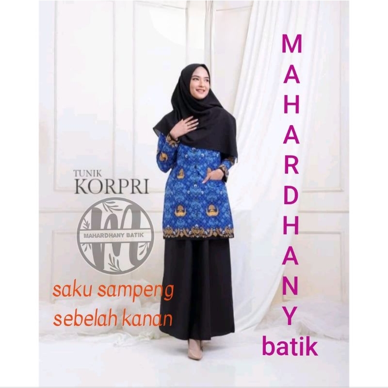 TUNIK KORPRI SAKU SAMPING kwalitas premium baju seragam PNS/ASN atasan wanita kerah hitam lengan panjang bahan katu