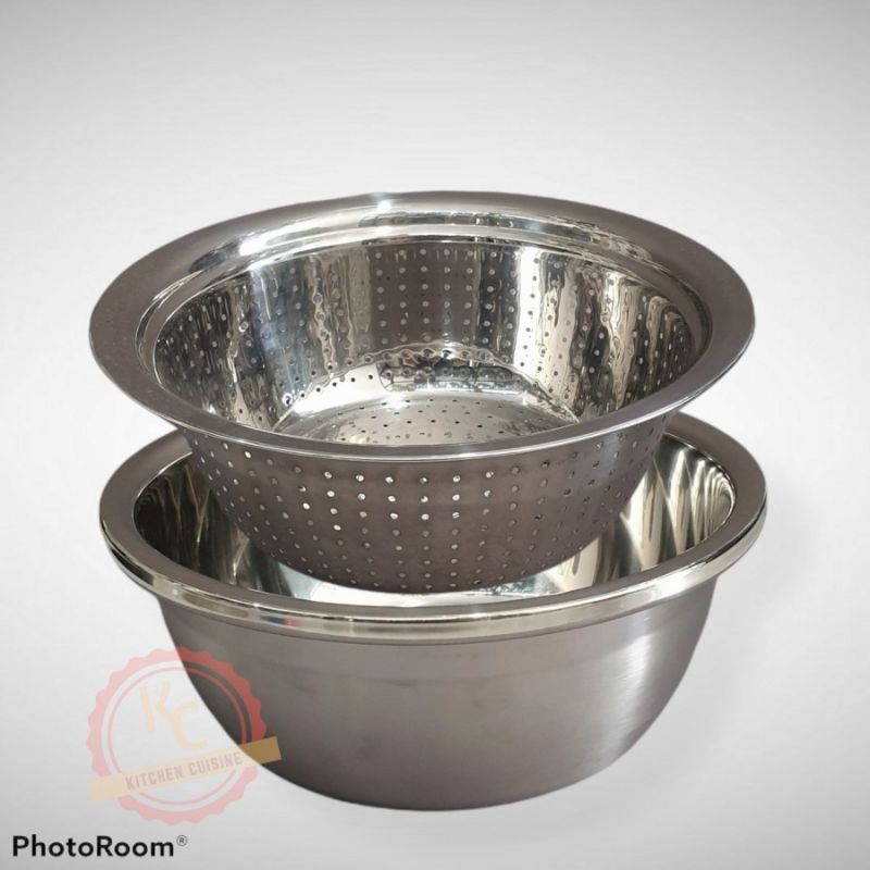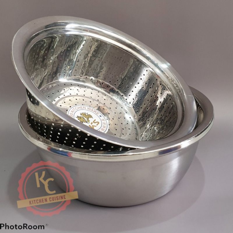 Baskom tiris Stainless Steel tebal Set / Cuci beras Sayur daging 32cm