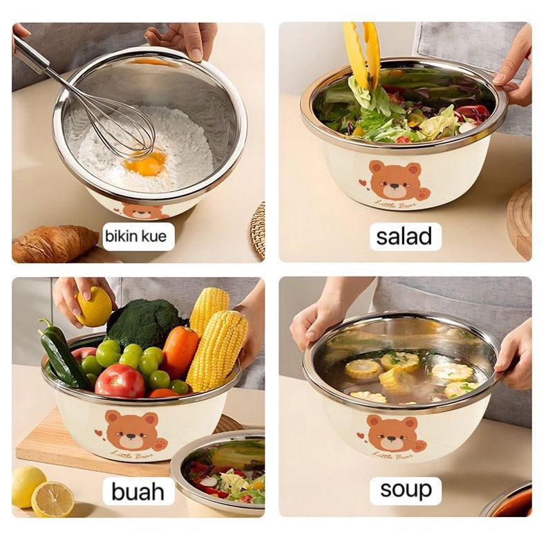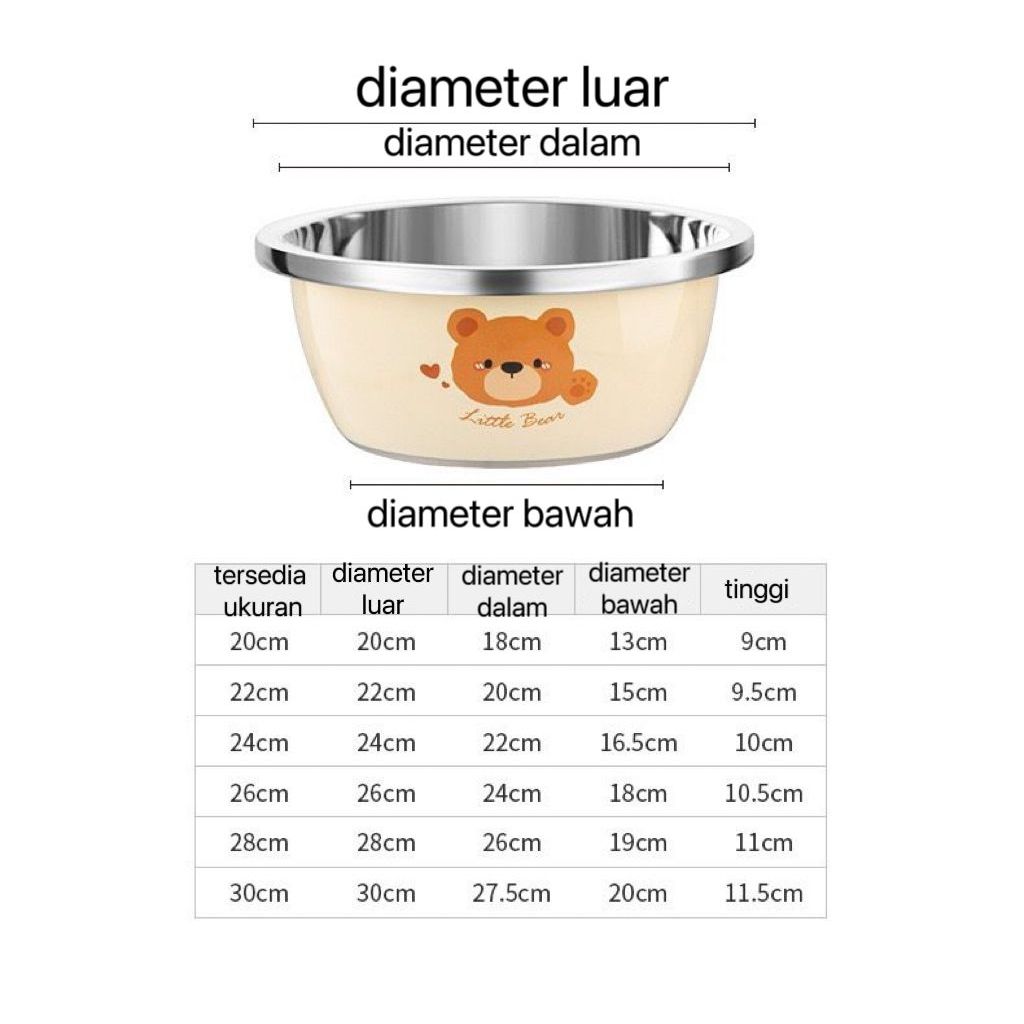 BAKINDO BKB-335 Baskom Bear Stainless Steel SUS 304 Wadah Cuci Beras Buah Sayur Bahan Premium Super Tebal Sudah Food Gra