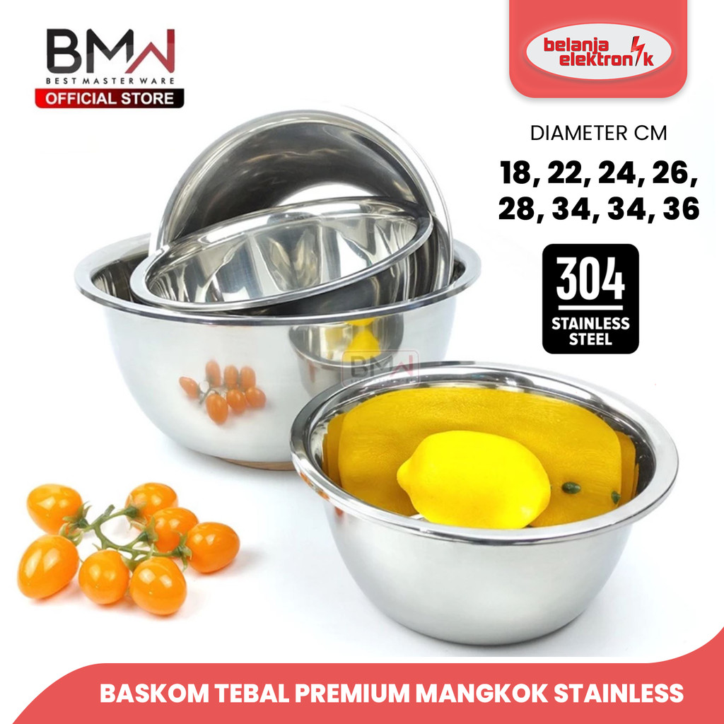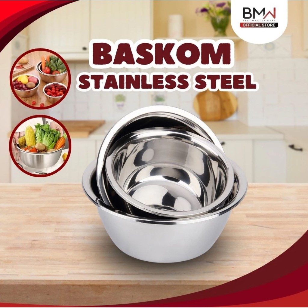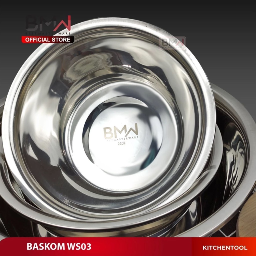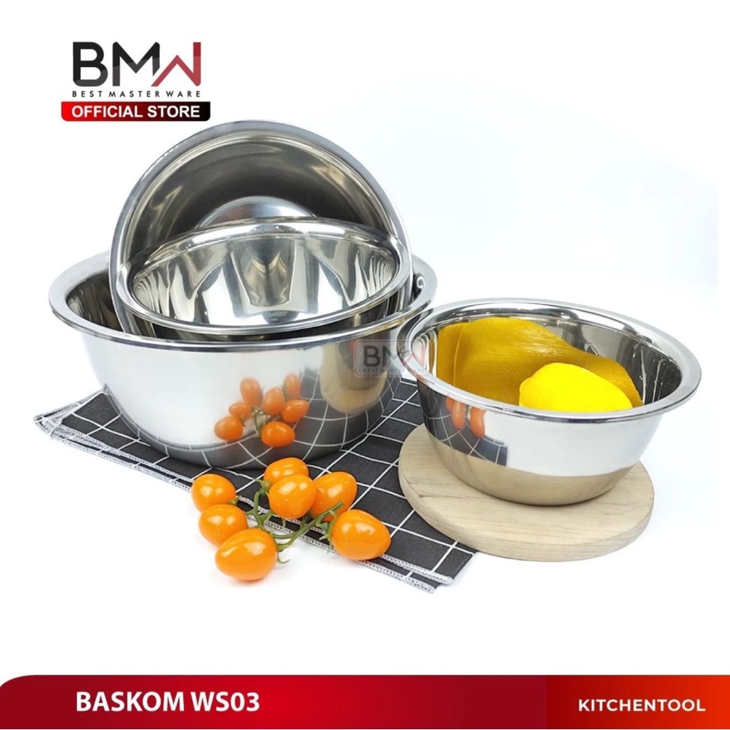 BMW BASKOM TEBAL PREMIUM WADAH MAKANAN TEMPAT CUCI SAYUR BUAH BERAS KOBOKAN MANGKUK MANGKOK STAINLESS WS03