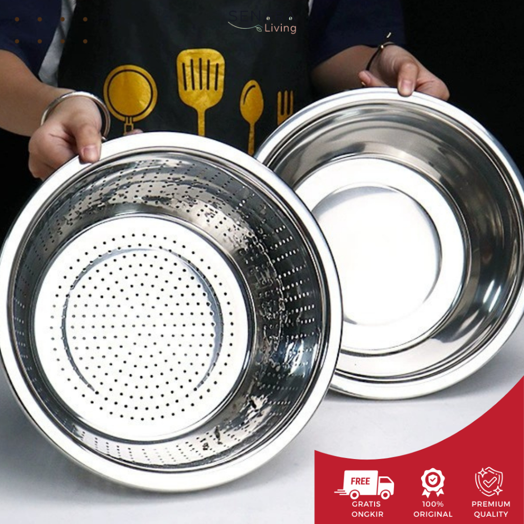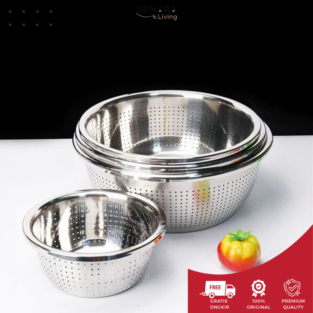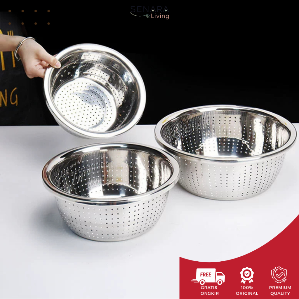 SENARA Living Wadah Makanan Wadah Sup Baskom Stainless Steel Wadah Cuci Beras Buah Sayur