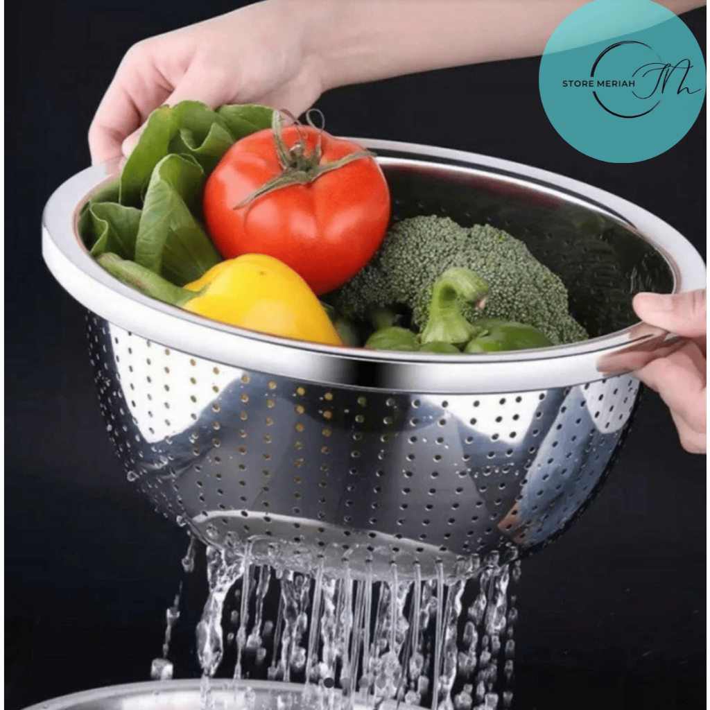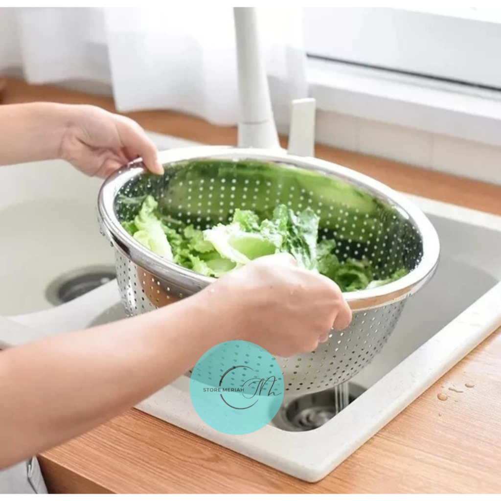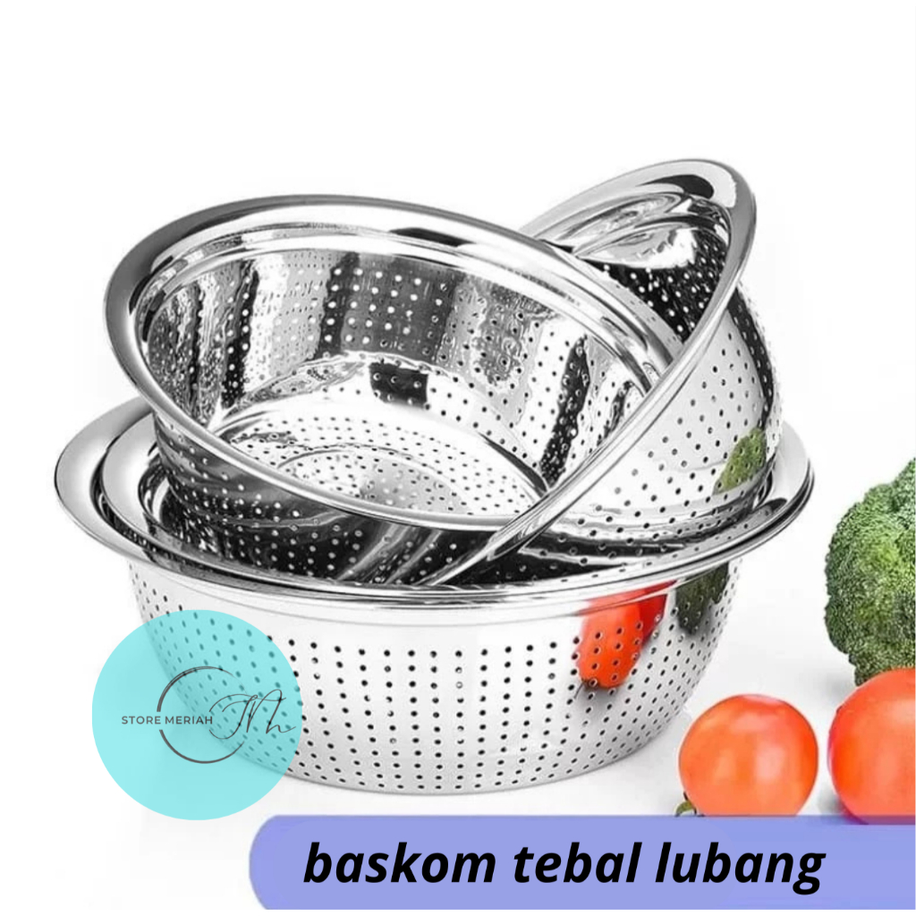 SM Baskom lubang Baskom Cuci Sayur Cuci Beras Baskom Stainless