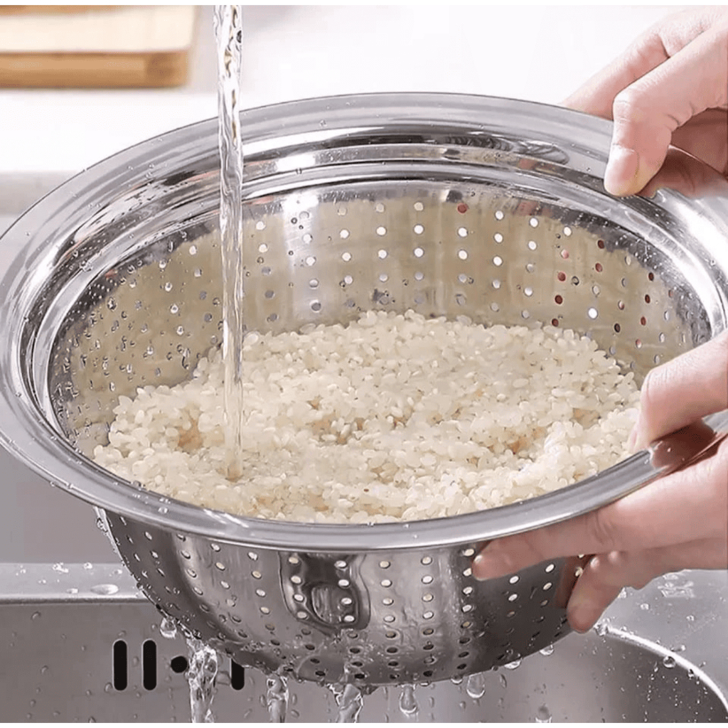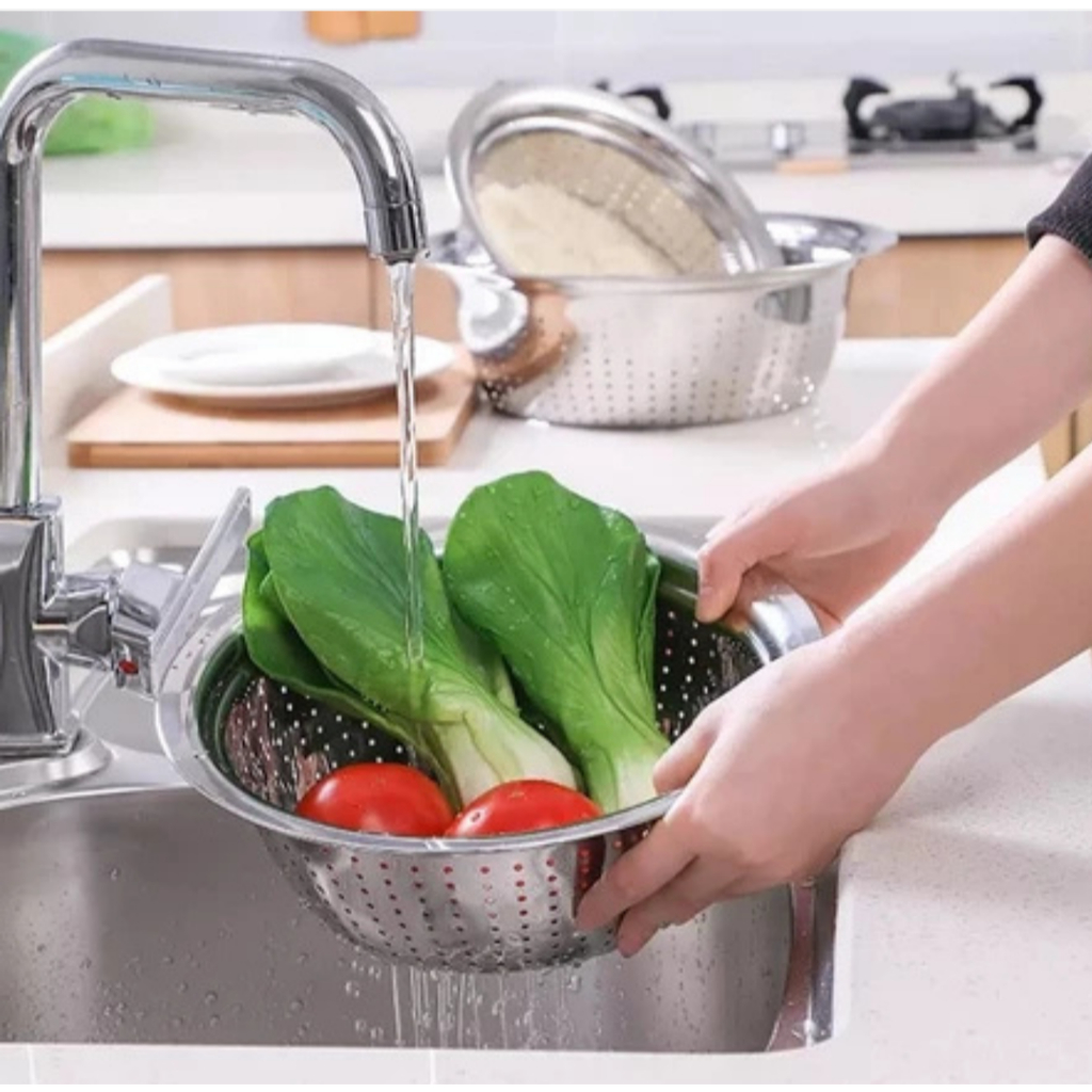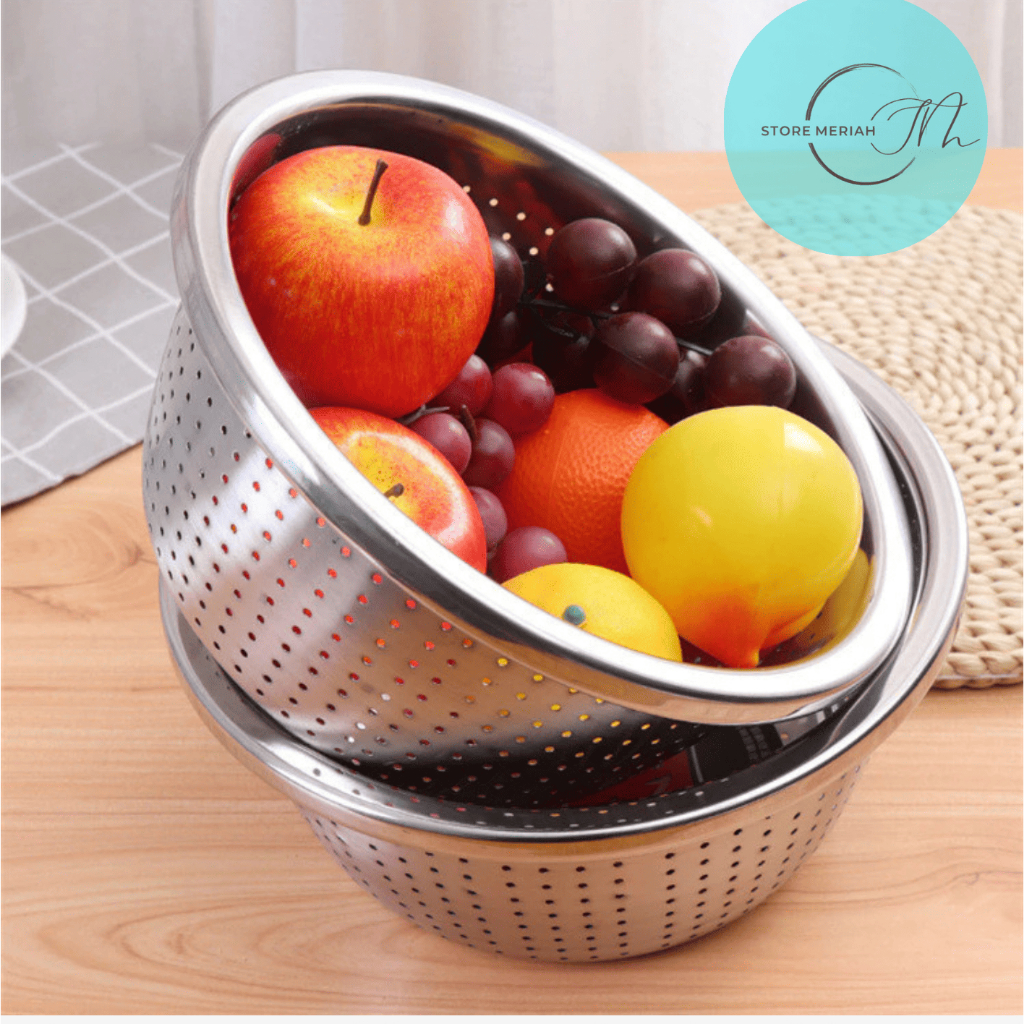 SM Baskom lubang Baskom Cuci Sayur Cuci Beras Baskom Stainless