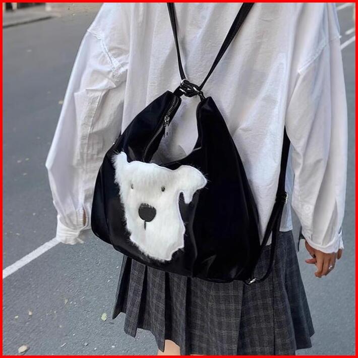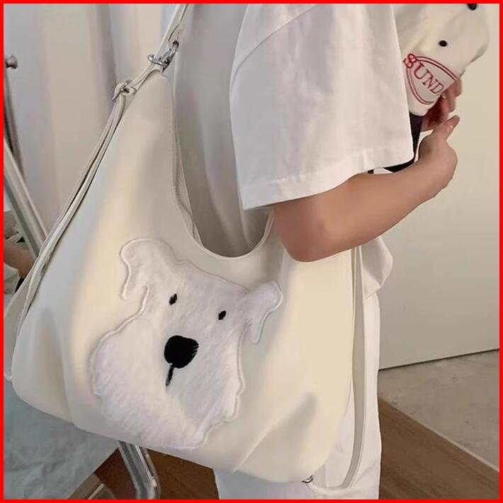 Chiyum Tas Selempang 3-in-1 Lucu Puppy Tote Bag Wanita Tas Sekolah Korean College Style Backpack Kapasitas Besar Shoulde