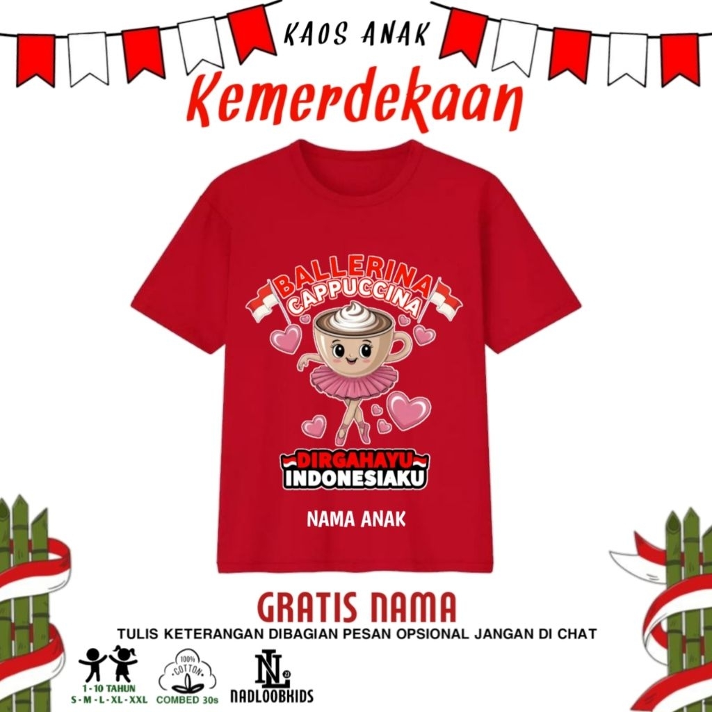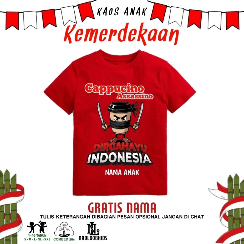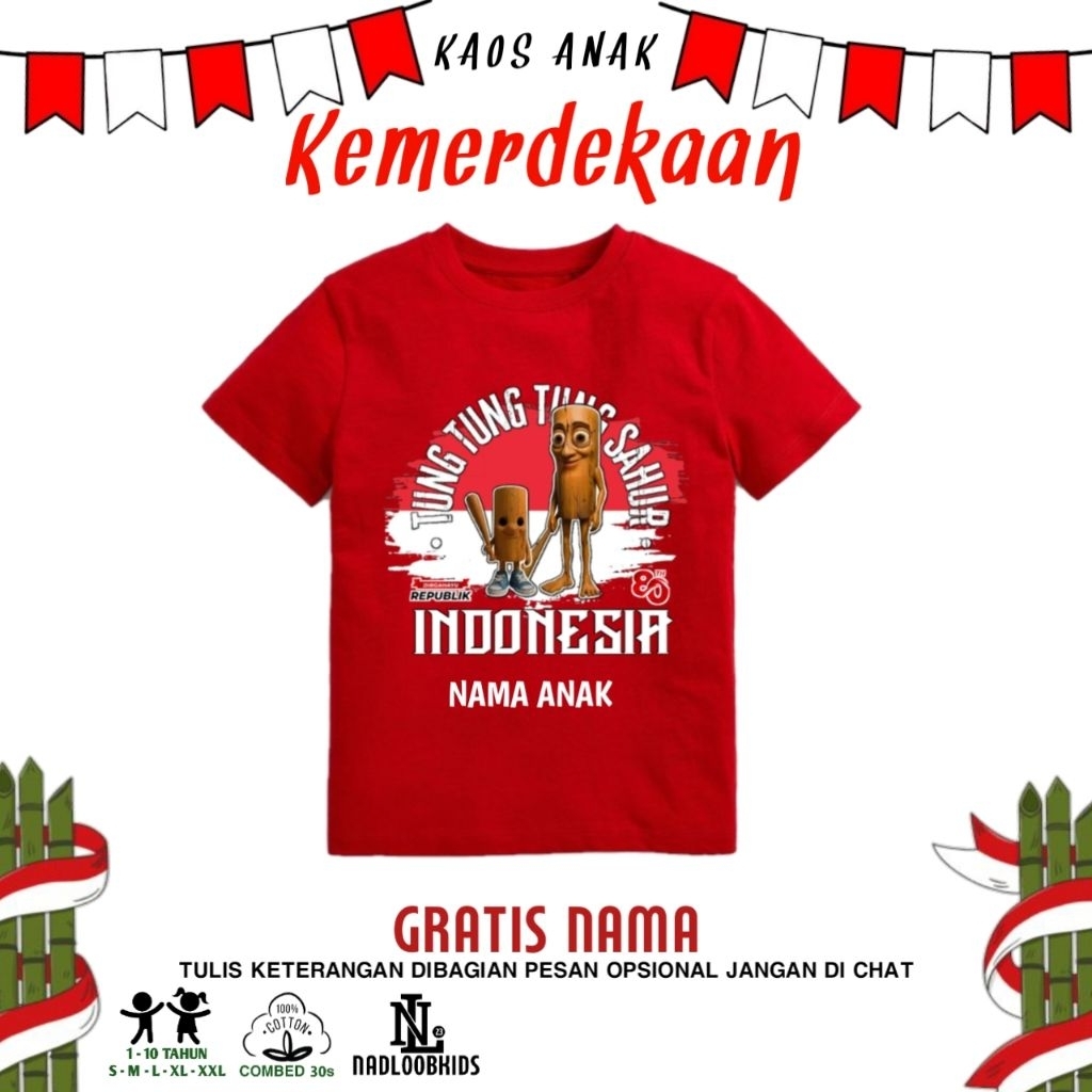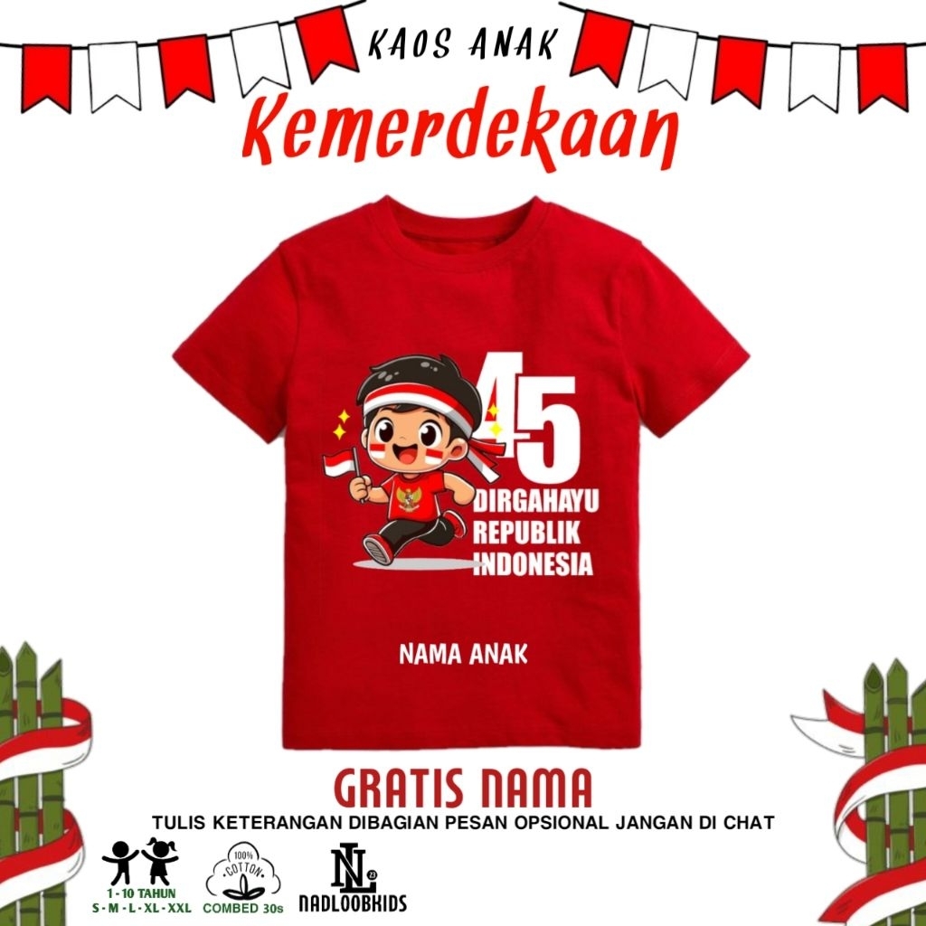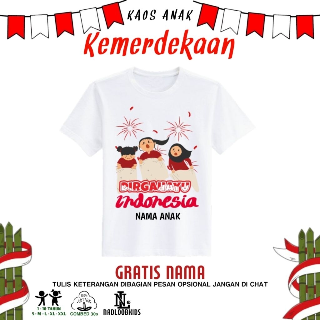 NADLOOBKIDS Kaos Kemerdekaan Laki-Laki/Perempuan Unisex Katun 30s FREE NAMA