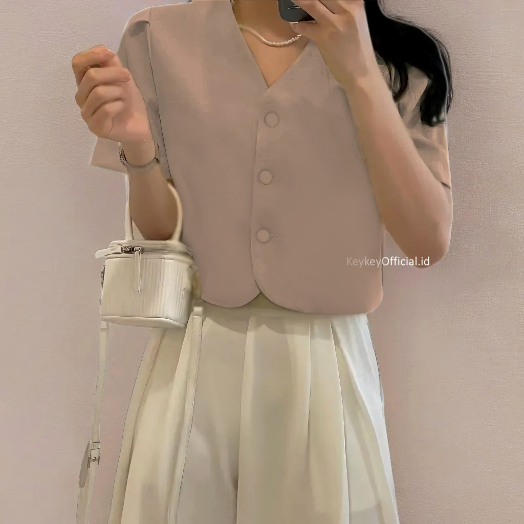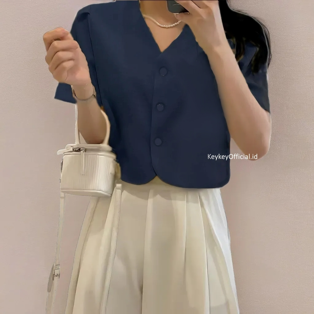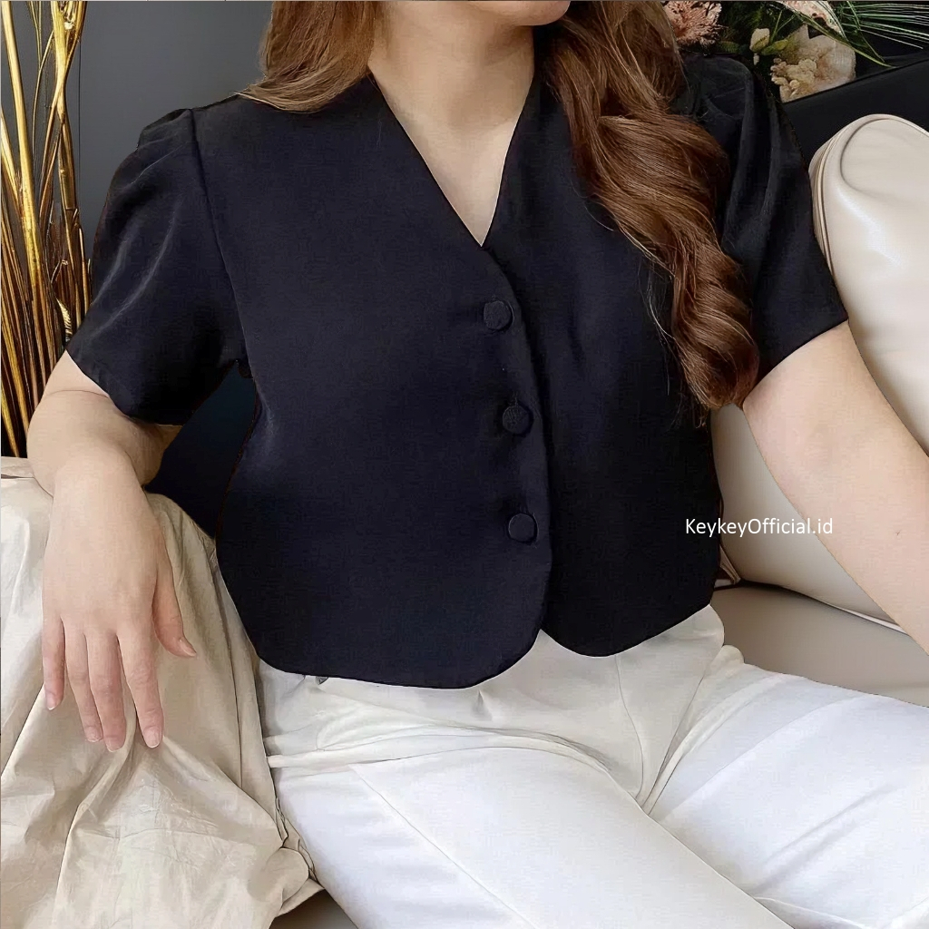 Key - 0160 TERRE Crop Top Button Wolfis Premium / Atasan Blouse Wanita Wolfis Premium Crop Kancing