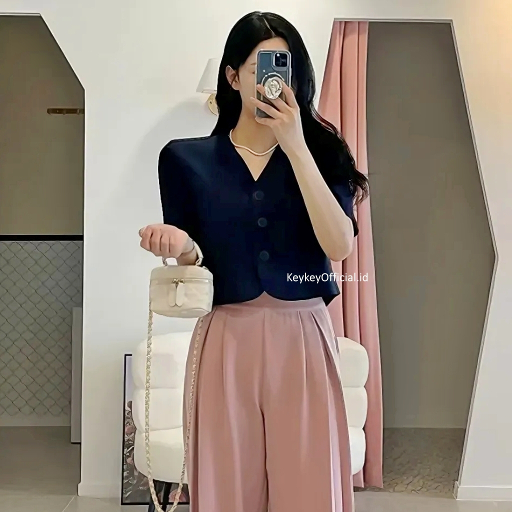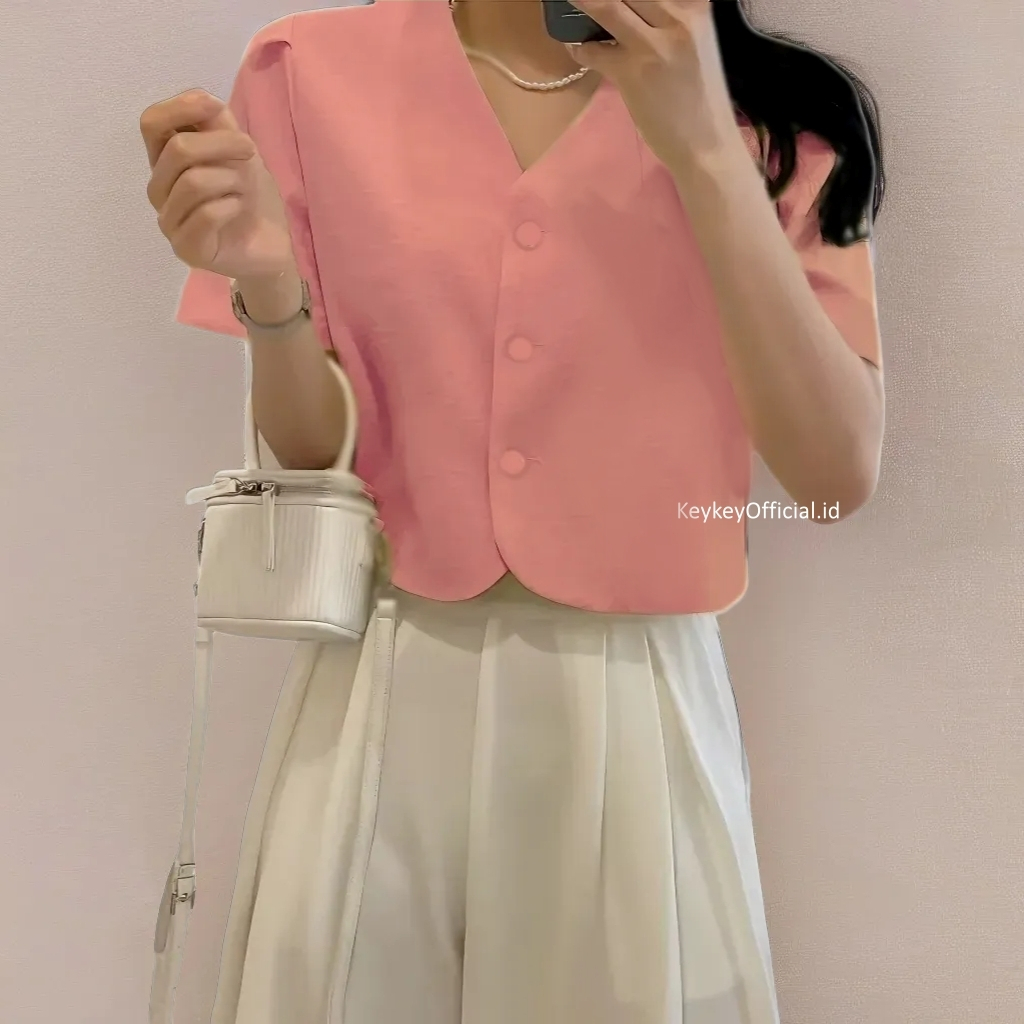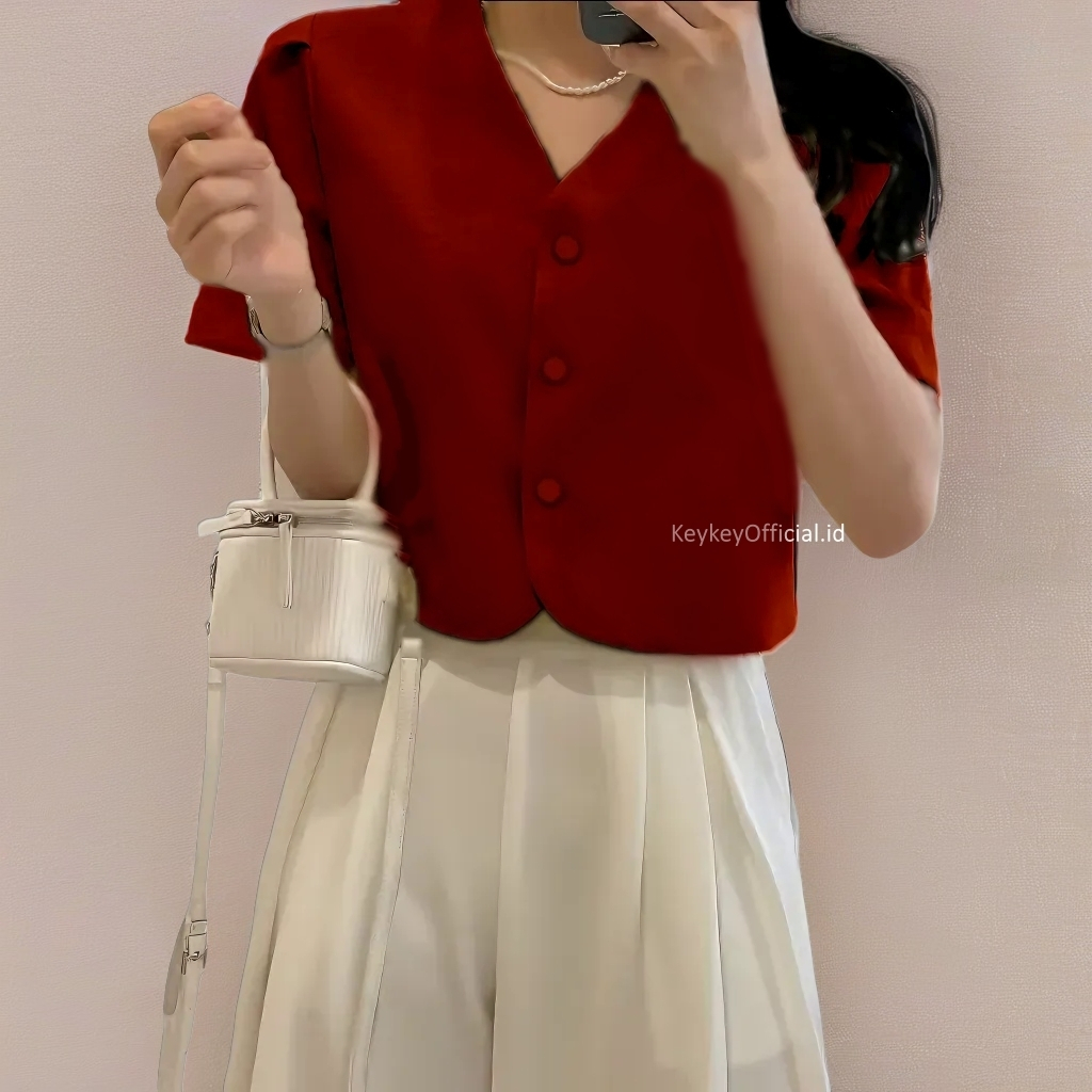 Key - 0160 TERRE Crop Top Button Wolfis Premium / Atasan Blouse Wanita Wolfis Premium Crop Kancing