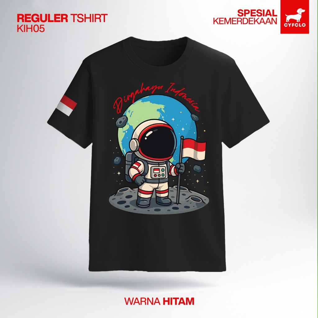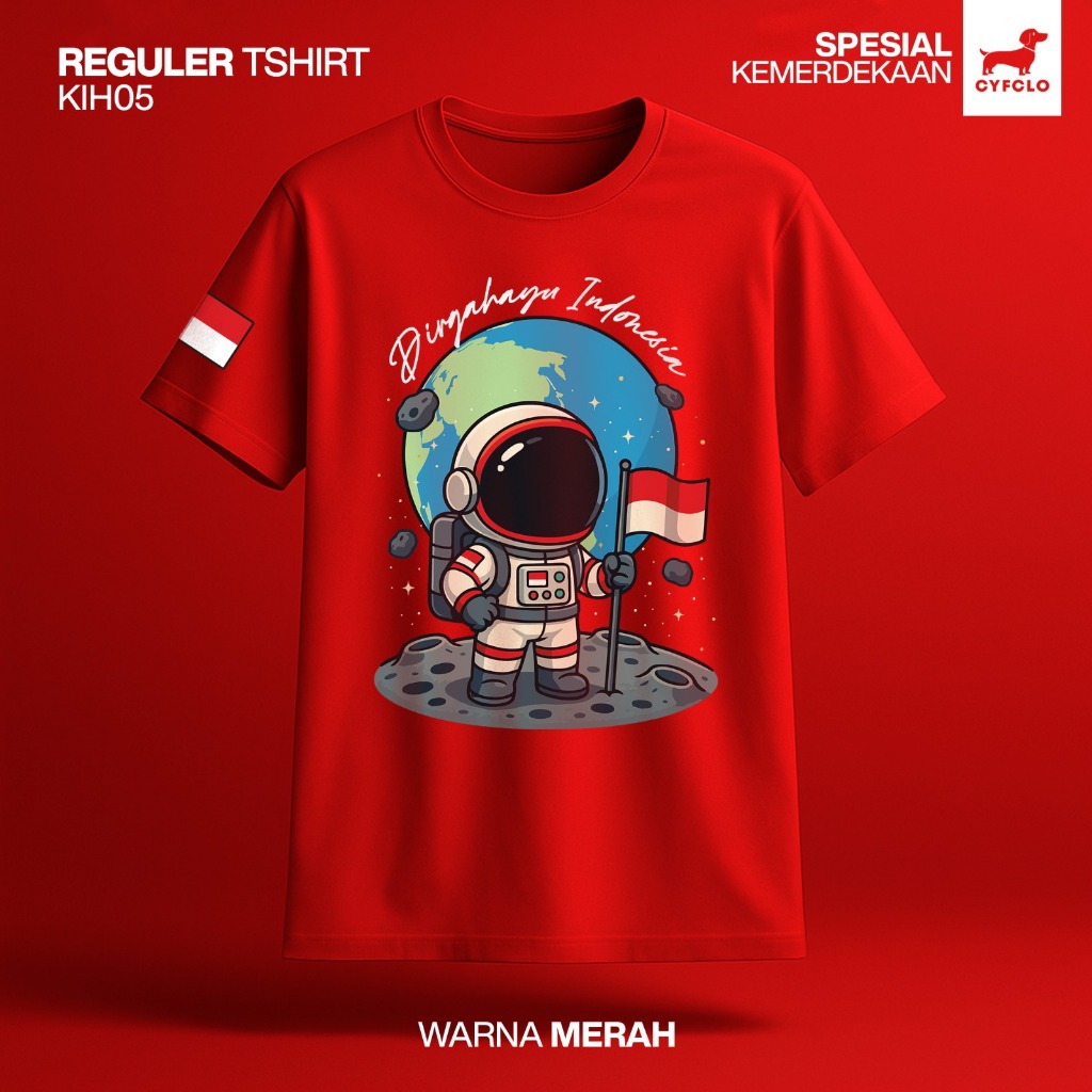 CYFCLO Baju Kaos T Shirt Kemerdekaan Indonesia Anti Gerah, Anti Nerawang | KIH05-Astronot Indonesia