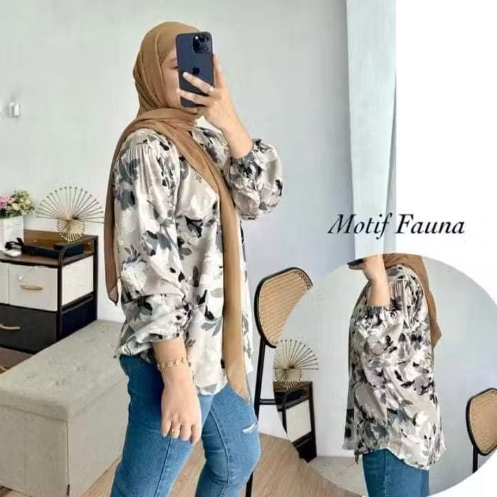 NABILA Blouse Atasan Wanita Kekinian Rayon Premium | Blouse Oversize Rayon Motif Model Kemeja Wanita | Kemeja Rayon