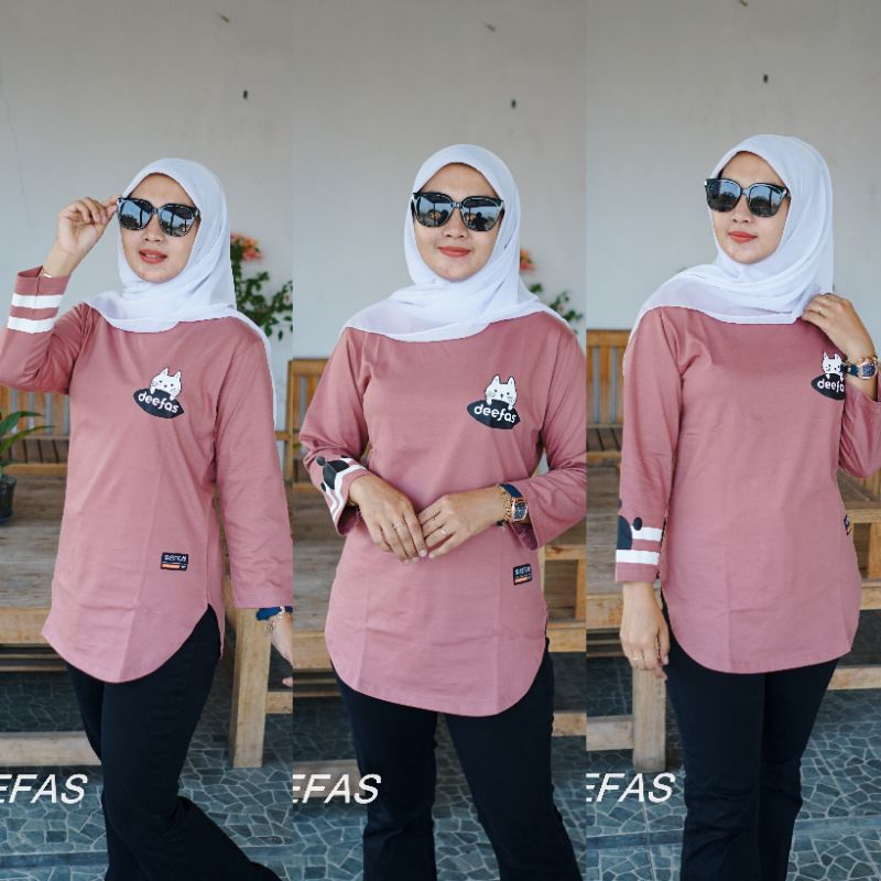 kaos oval motif tangan 7)8 kaos atasan wanita bahan katun combet20 deefas original
