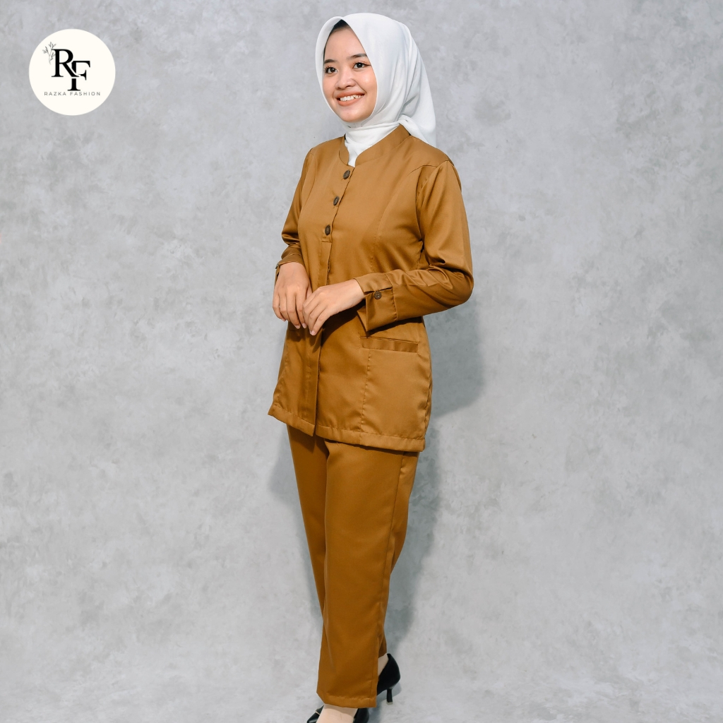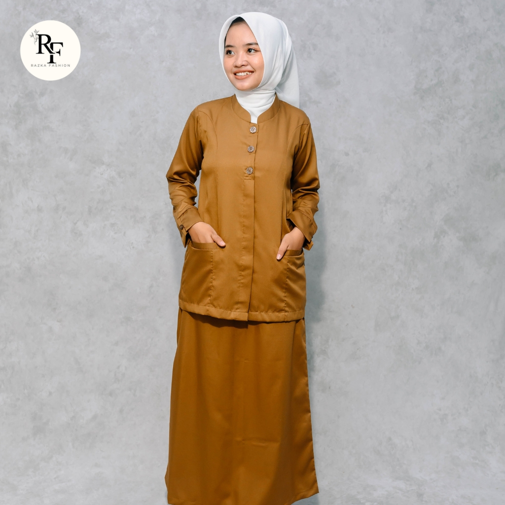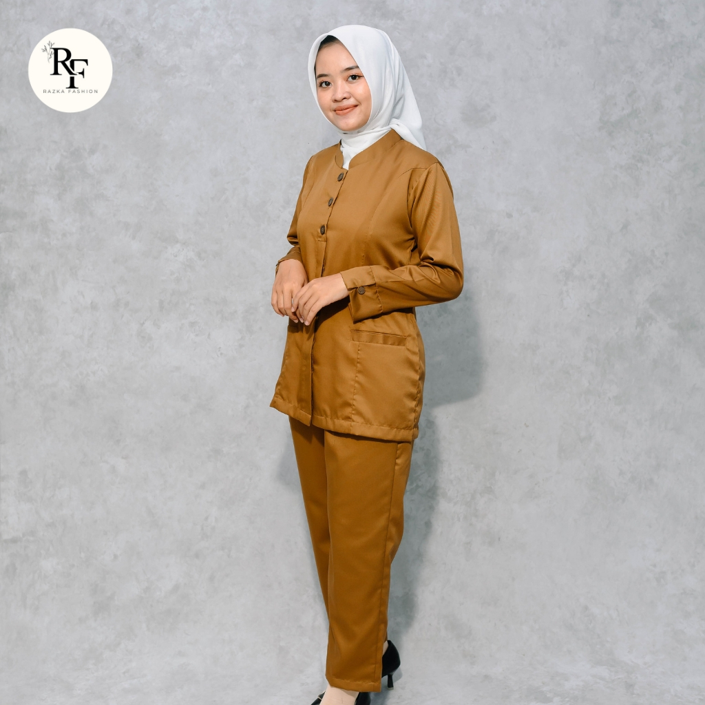 Setelan Seragam Dinas PNS/P3K Pemda Wanita Khaki Tua Model Saku Bawah Terbaru 2025