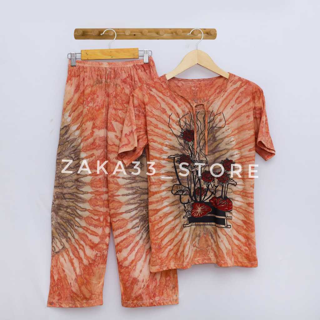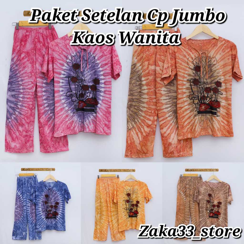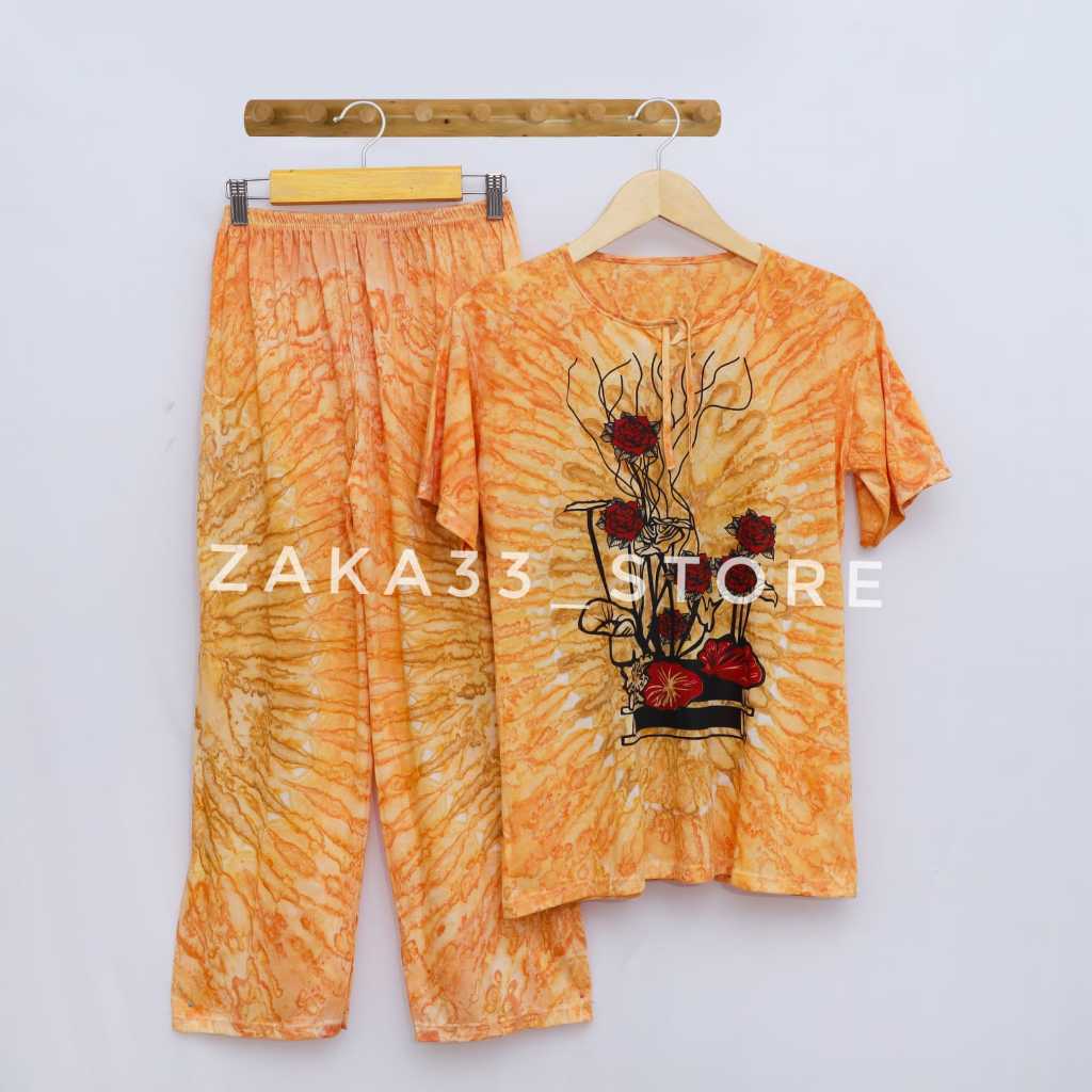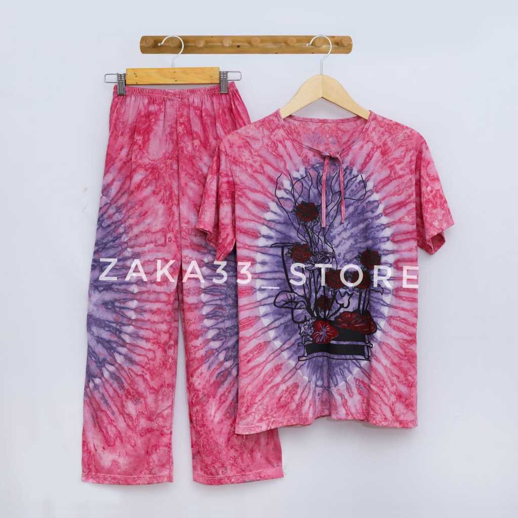 Setelan Wanita Kaos Jumbo Motif Abstrak Lengan Pendek