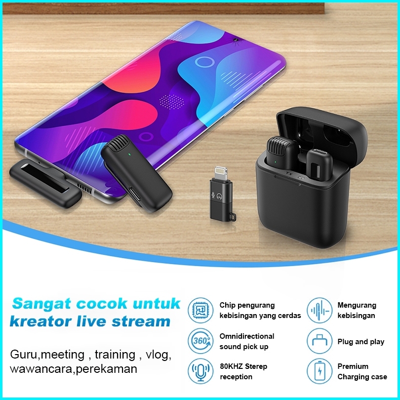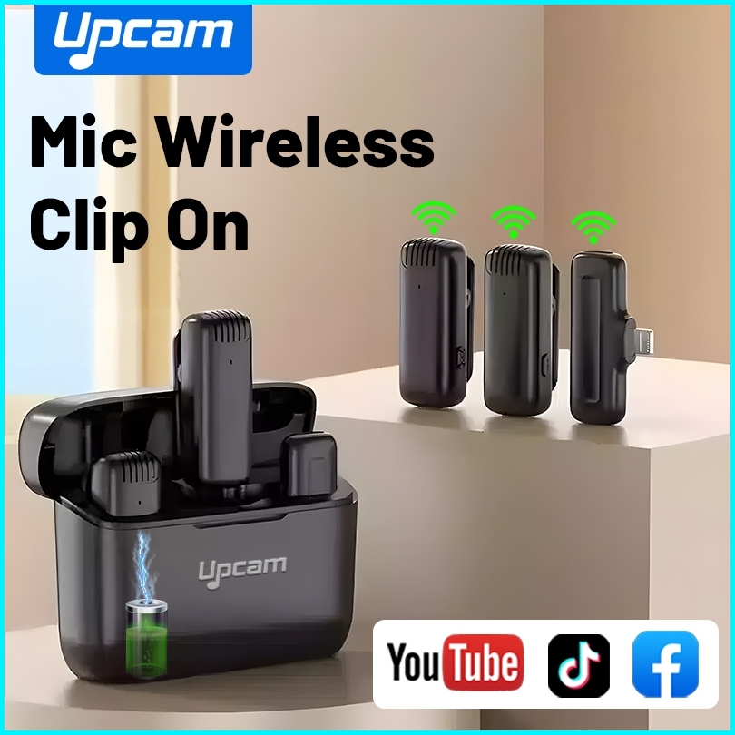 Upcam Microphone Wireless Nirkabel Lavalier Dual Wireless Bluetooth Mic Clip On Wireless Microphone