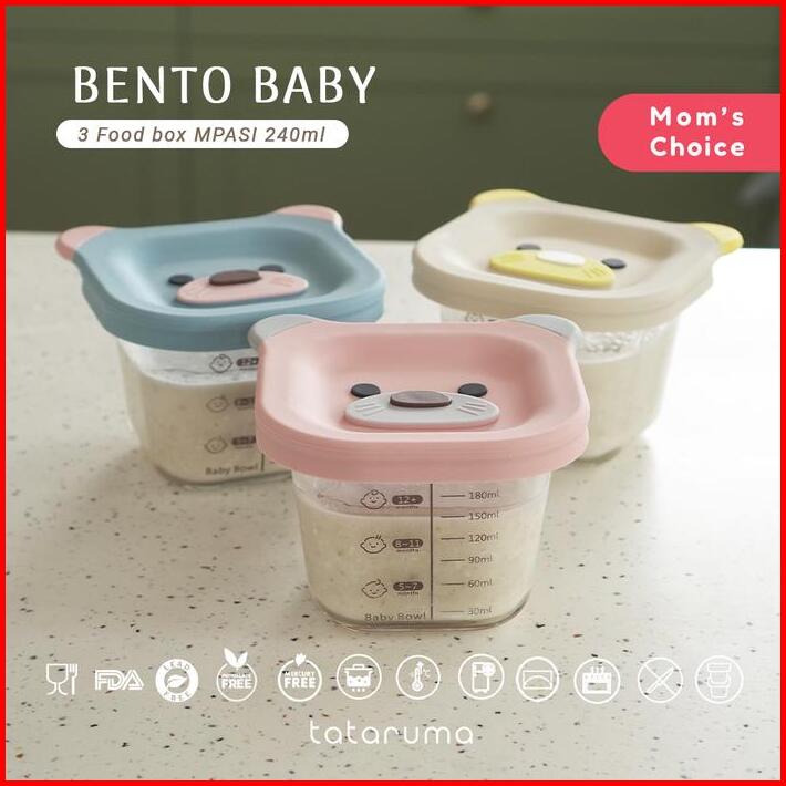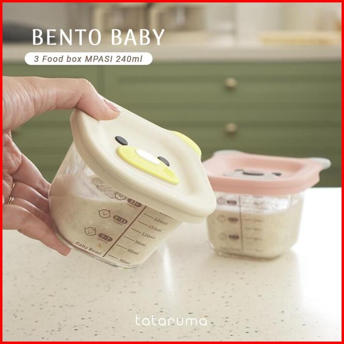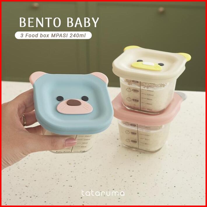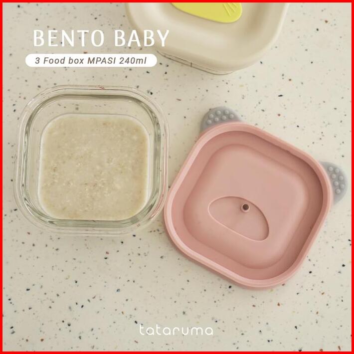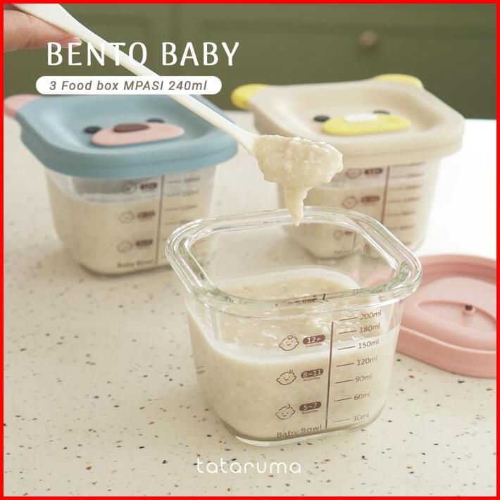Bento Baby Isi 3pcs Food Box Kotak Kaca Mpasi Bayi
