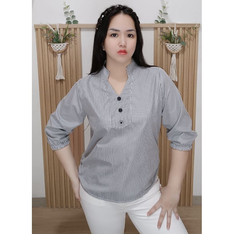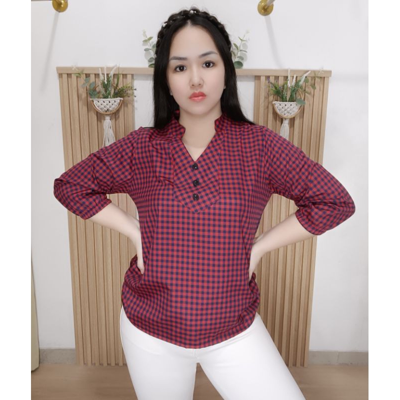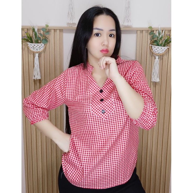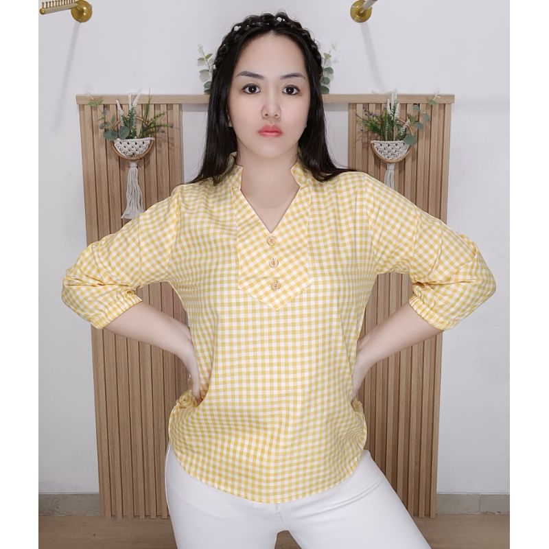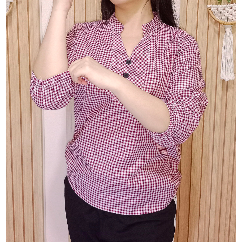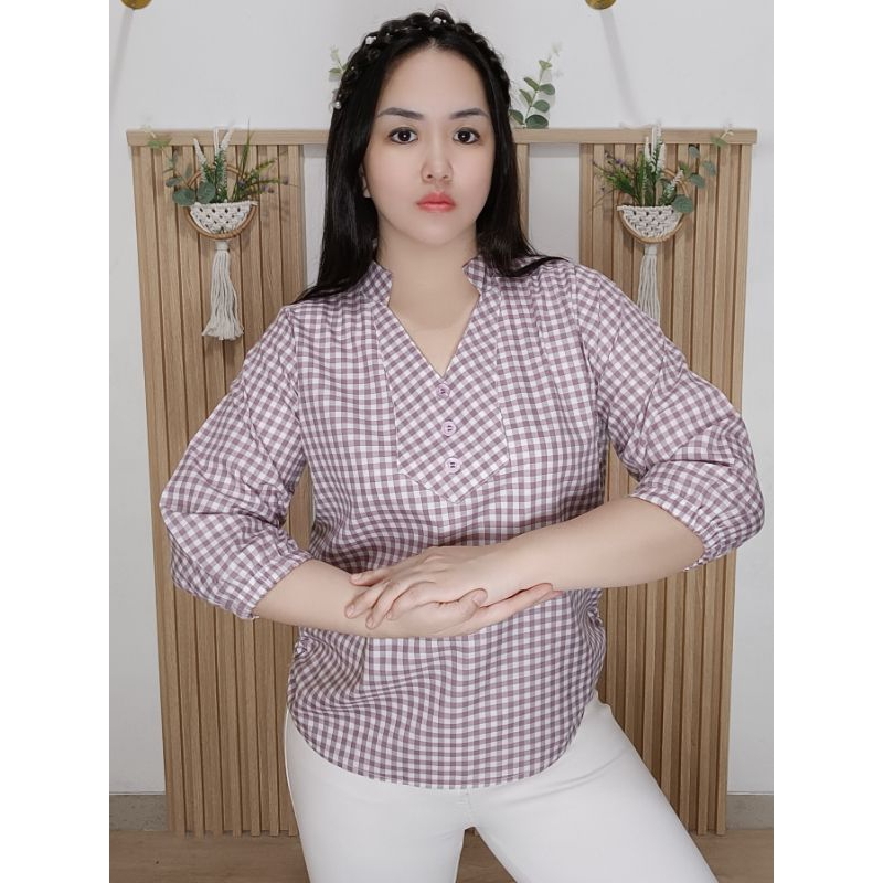 JJJ LYN - Blouse Naysoo Atasan Wanita Motif Kotak Atasan Kerja Atasan Kasual