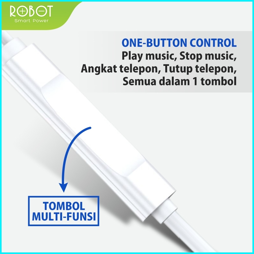 Robot Wired Headset Earphone Bass Kabel Audio Jack Smartphone Re10 Original - Garansi 1 Tahun