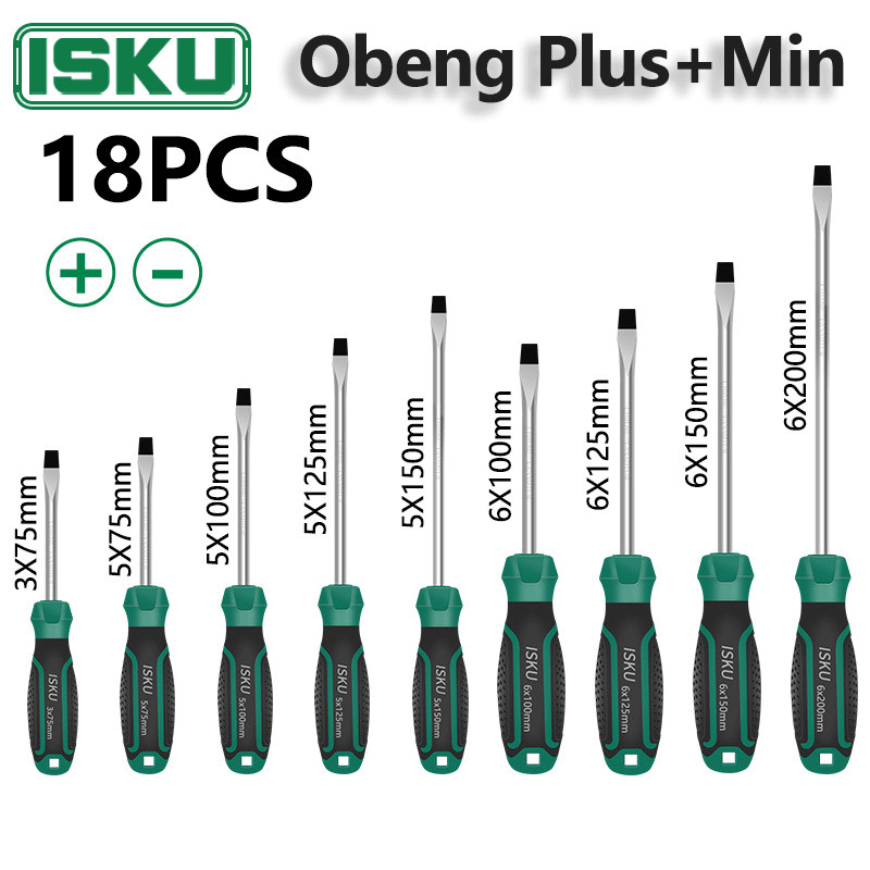 ISKU Obeng Set Plus Dan Minus Alat Perkakas Screwdriver Magnetik Bahan Chrome Vanadium/Obeng