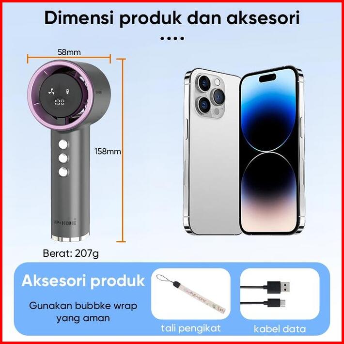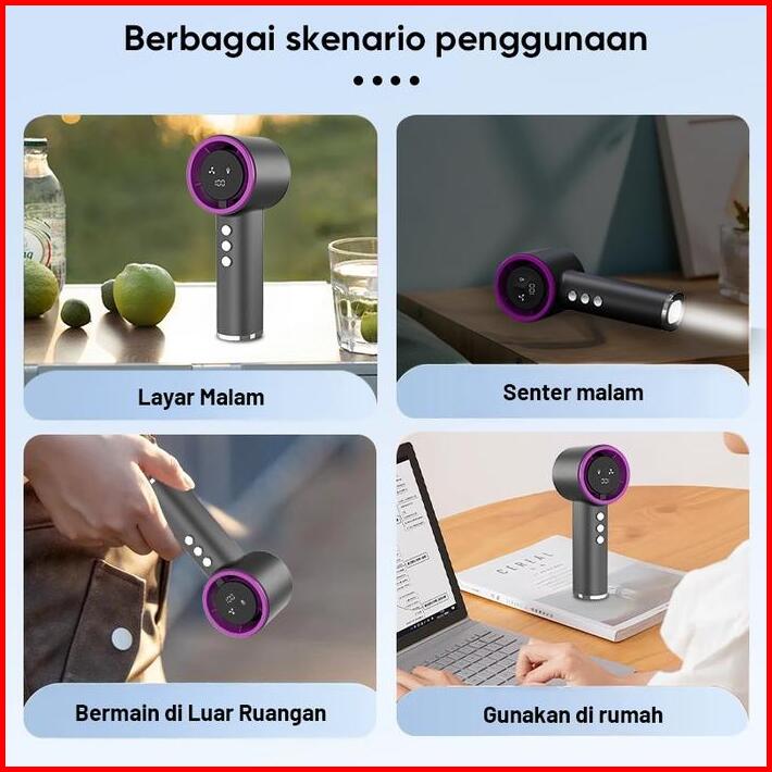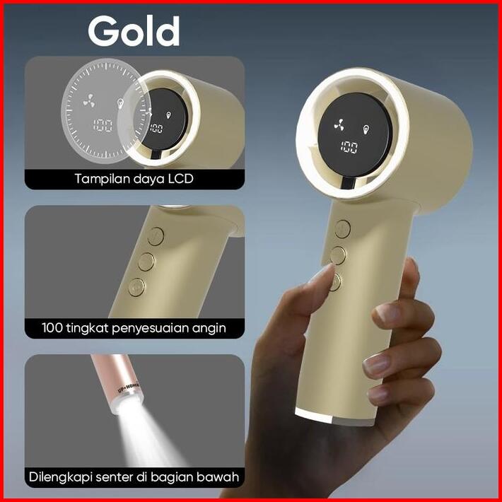 Uphome Kipas Angin Portable Mini Strong Wind 100 Gear Kipas Senter Led Super Terang Adjustable Turbo 18000rpm