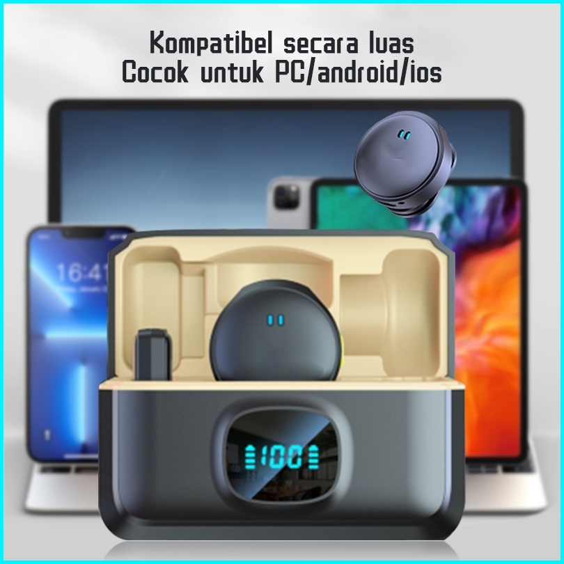 Mikrofon Nirkabel Lavalier Mic Portabel Audio Video Pembuatan Rekaman Wireless Microphone Hp Clip On 2 Mic With Charging