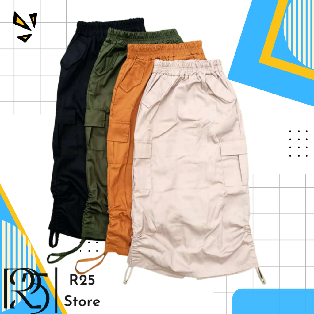 R25 Store ROK CARGO anak perempuan 1-13 tahun katun drill Korean style