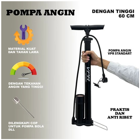 VPR Pompa Angin Ban Sepeda Dan Motor Kompa Sepeda Meter Tekanan Manual Dual Pentil Alloy