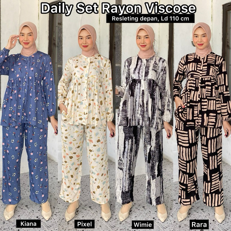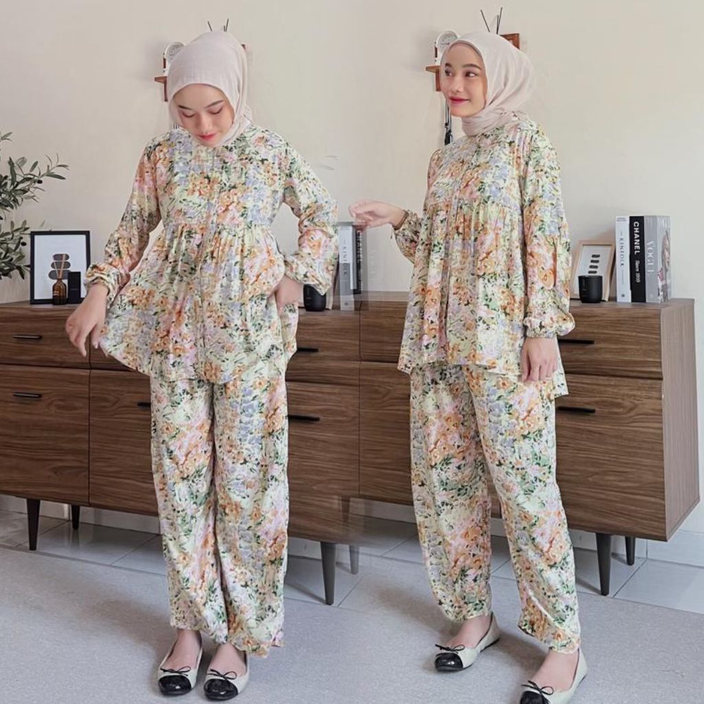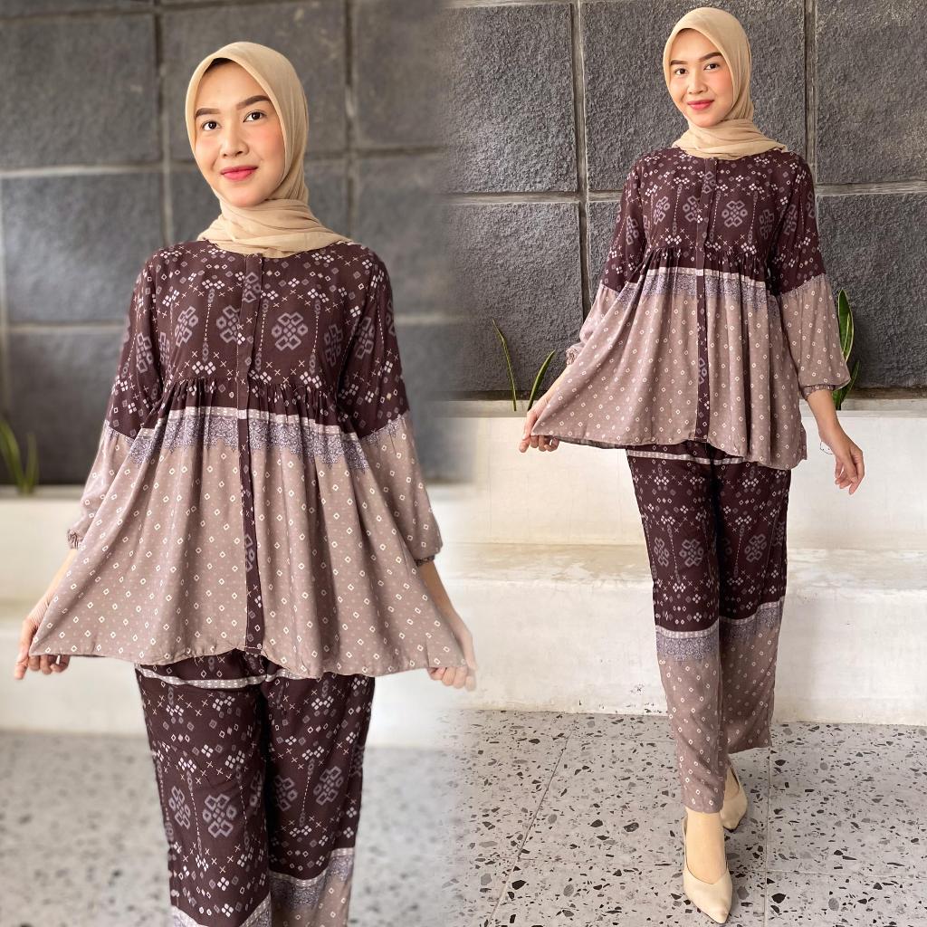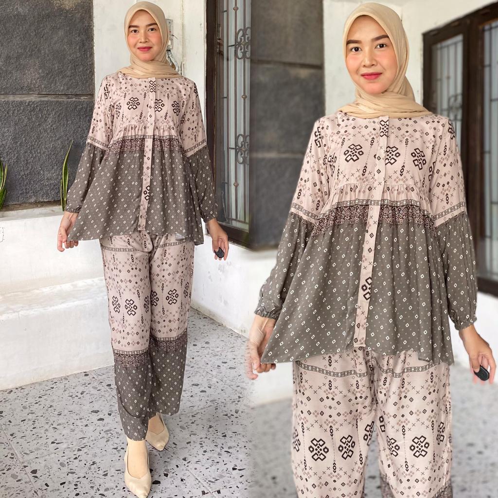 Daily Set Motif - Setelan Rayon Viscose - Mecca Set - One Set Pajamas Ruffle - Tans Collection