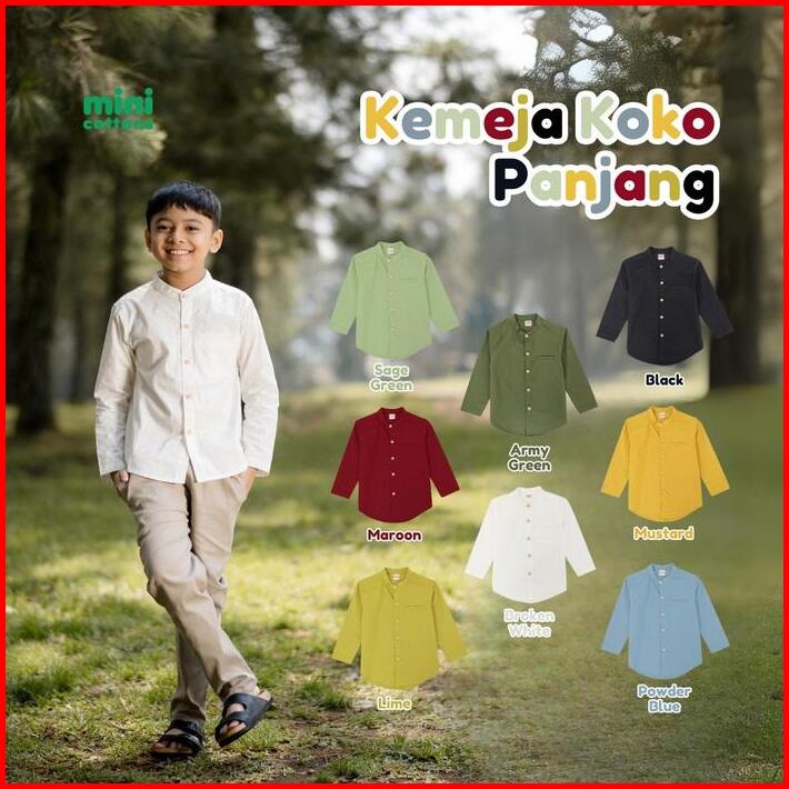 Mini Cottons Kemeja Koko Anak Lengan Panjang Kemko Muslim Linen Baju Katun Setelan