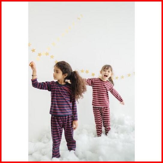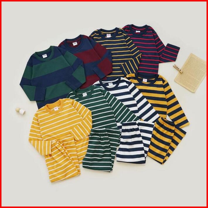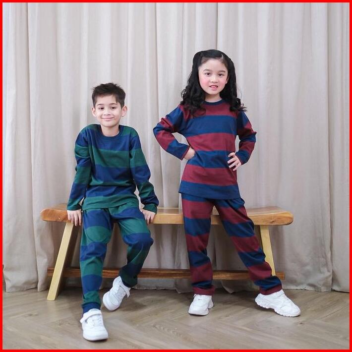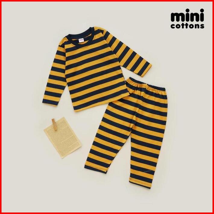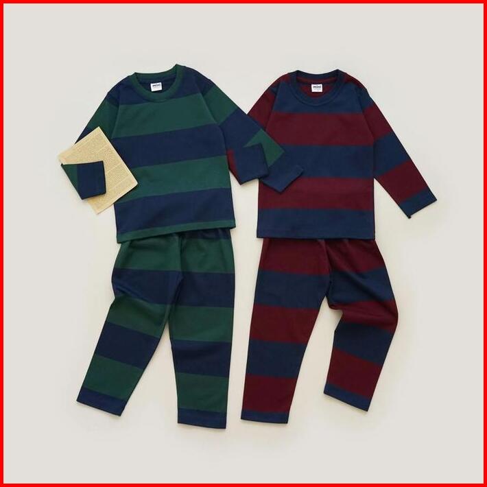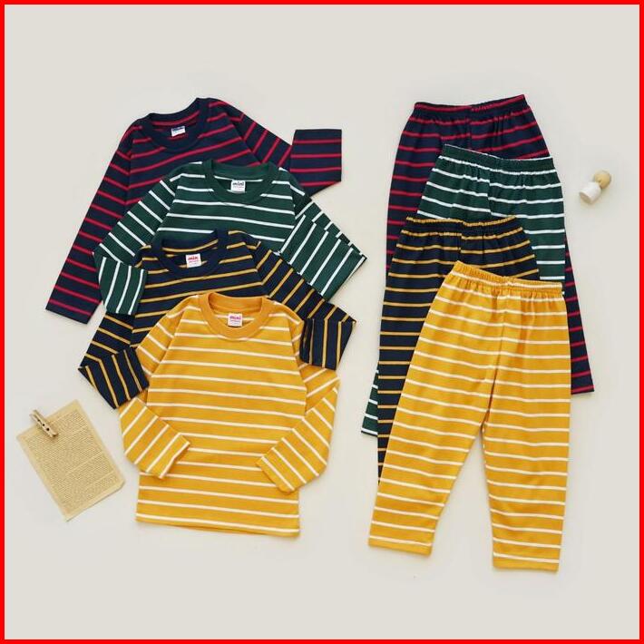 Mini Cottons Piyama Setelan Set Anak Striped Baju Celana Fashion