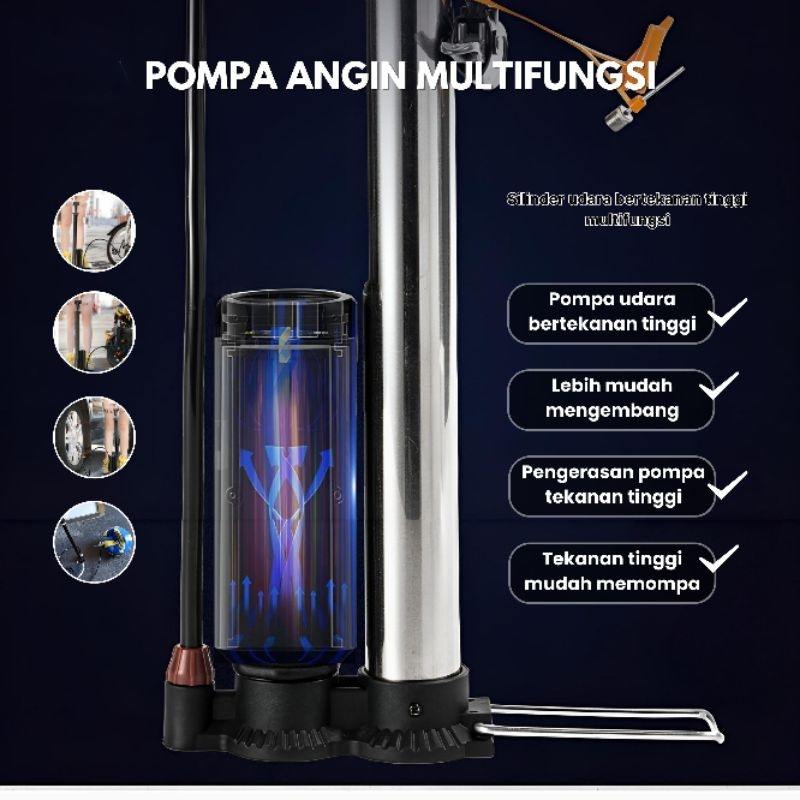 Pompa Angin Ban Sepeda Dan Motor Kompa Sepeda Meter Tekanan Manual Dual Pentil Alloy