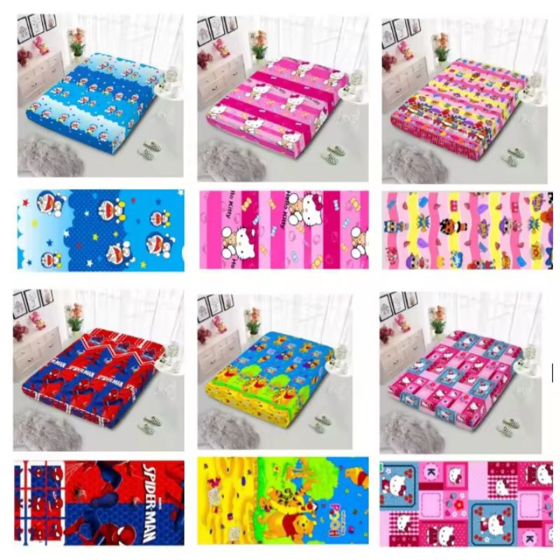 Promo Sarung Kasur Busa Sprei Resleting Motif Karakter Cewe, Laki, Dewasa, Bunga, Keropi, Sailor Bear, Kaktus, Doraemon,