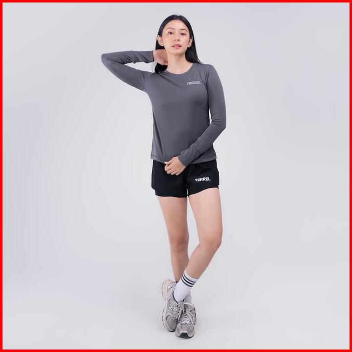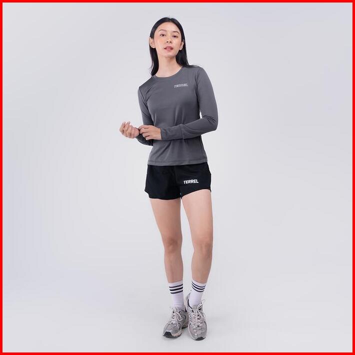 Terrel Sportswear Basic Long Sleeve Grey Women Dry Fit Running Gym Yoga Kaos Olahraga Wanita Baju Pakaian