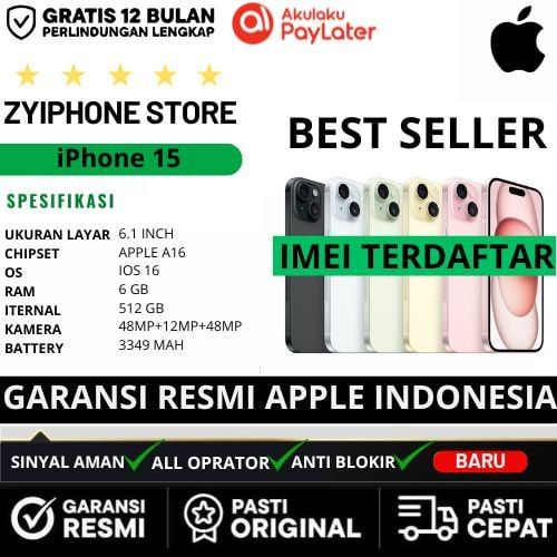 Official Resmi Hp Iphone 15/14/13/12/16 64GB 128GB 256GB Second Original LIKE NEW
