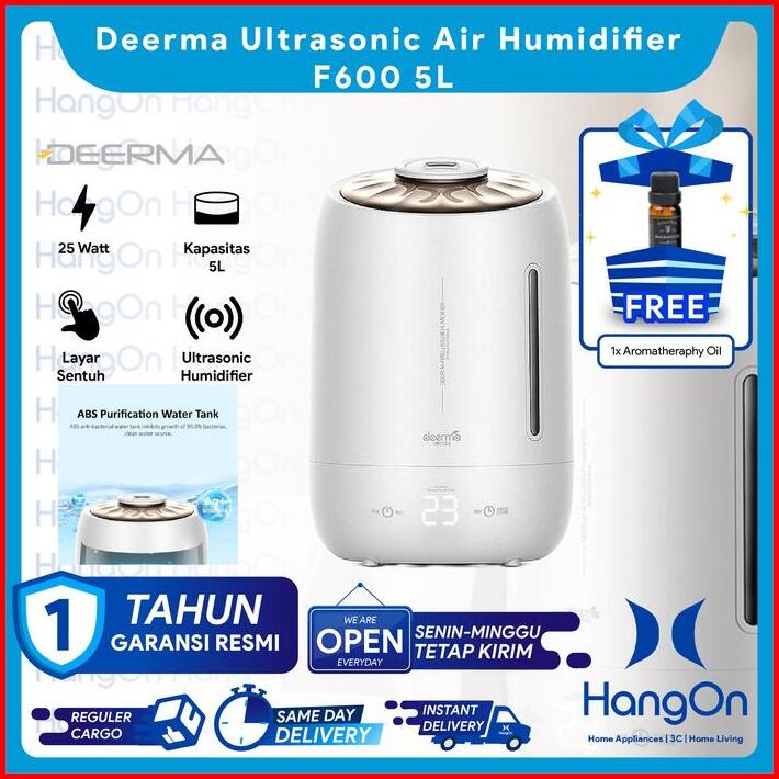 Deerma F600 5l Air Humidifier Ultrasonic Touch Screen F 600 5 Liter Pelembab Ruangan 3 Level Uap