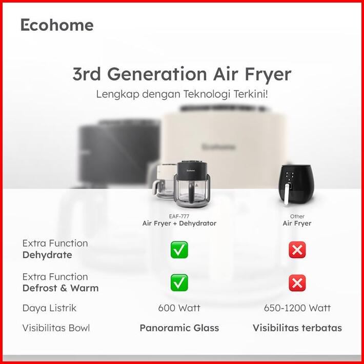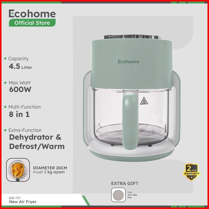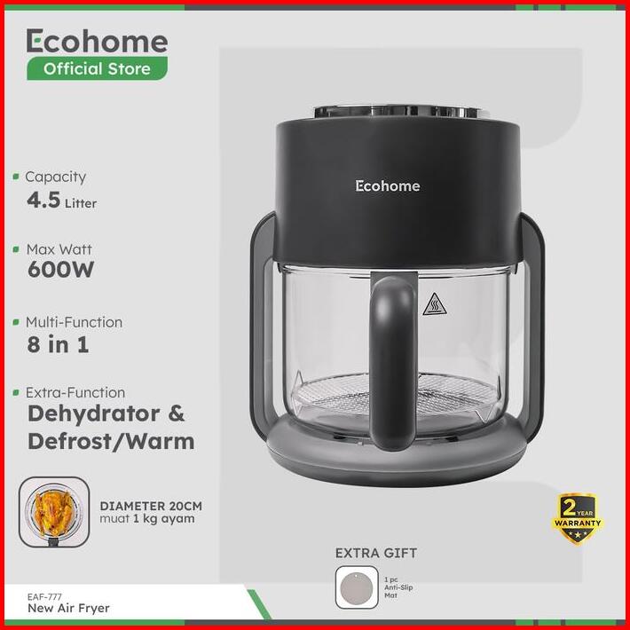 Ecohome Air Fryer Dehydrator 8 In 1 Function Eaf-777 4.5l Capacity With Panoramic Glass 360 View