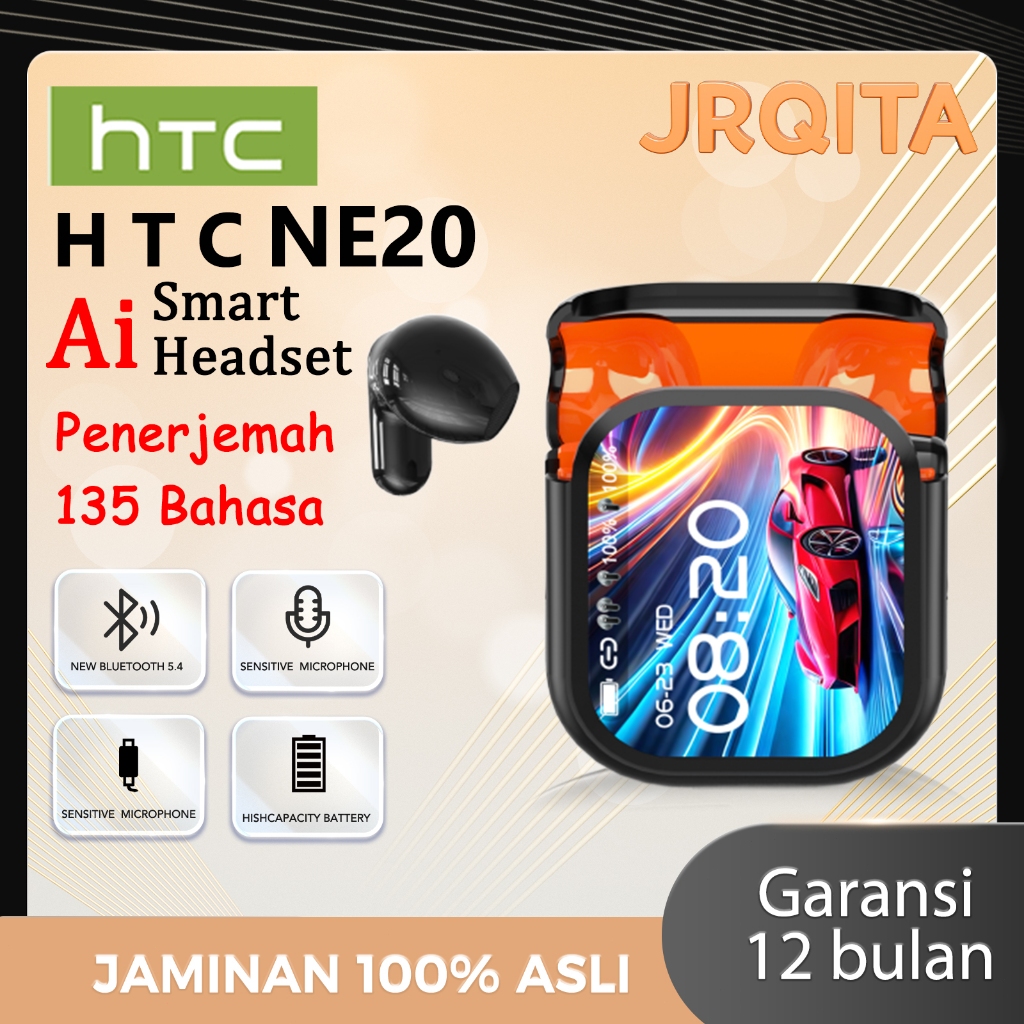 HTC NE20 Headset penerjemah AI Menerjemahkan 134 bahasa Kontrol layar Earphone Bluetooth nirkabel Earphone game dan olah