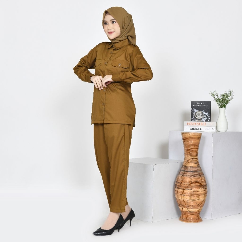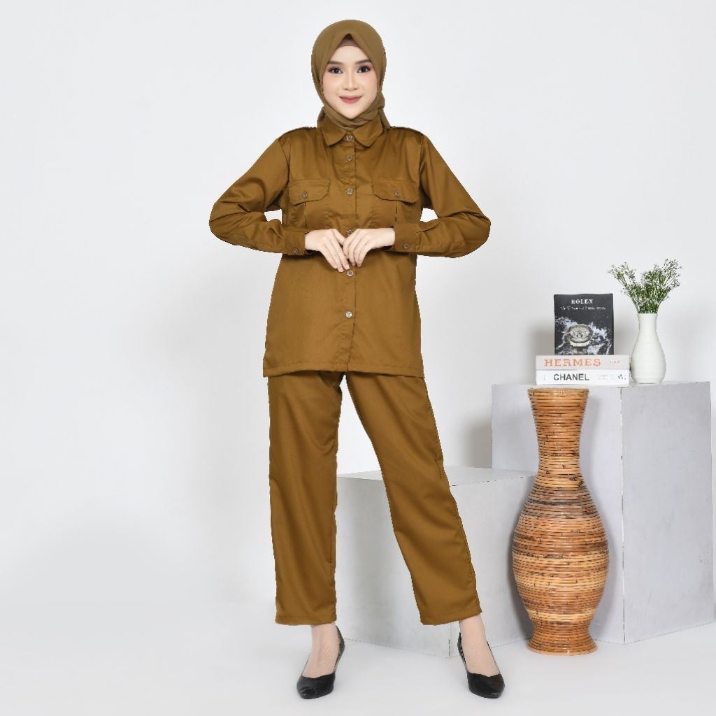 Setelan Seragam Dinas PDH Khaki Jumbo Katun Toyobo Fodu