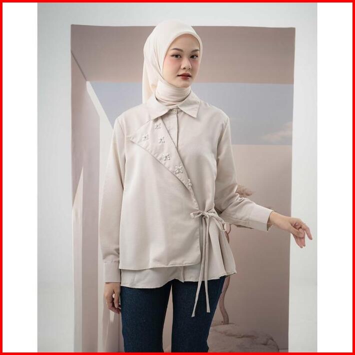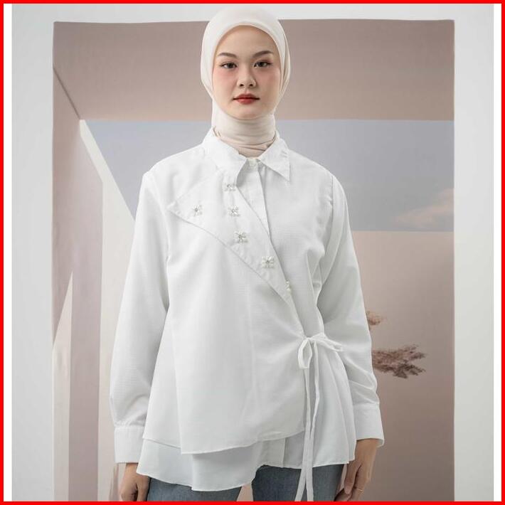Mayoutfit Jilly Shirt Kemeja Wanita Atasan Kimono Aksen Beads Layer Kancing Hidden