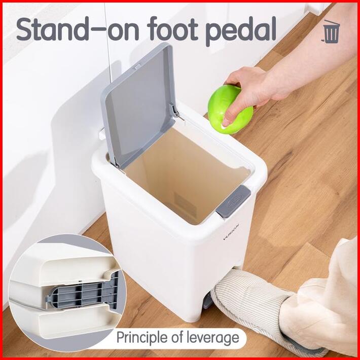 Vusign Trash Can Tempat Sampah Injak Tong Sampah Plastik Tertutup Ruang Tamu Dapur Kotak 15 Liter Vs1111 Vs1112