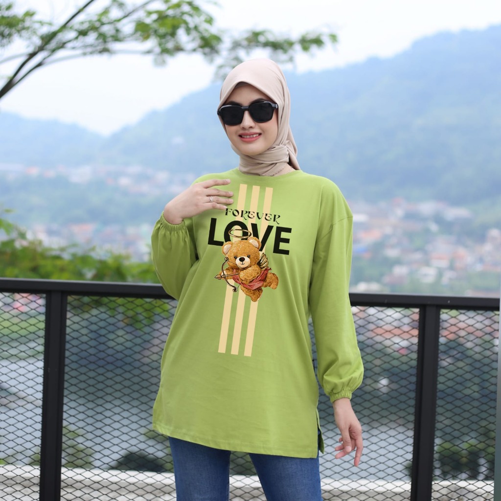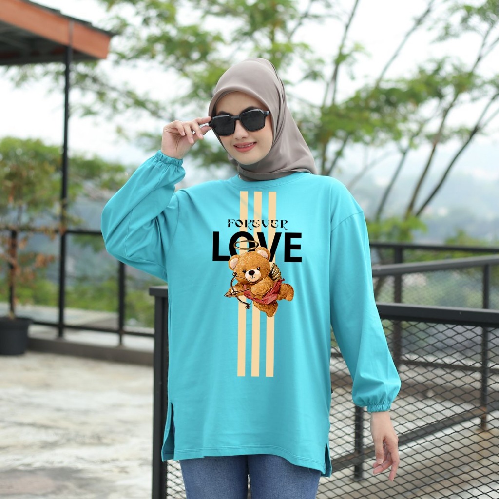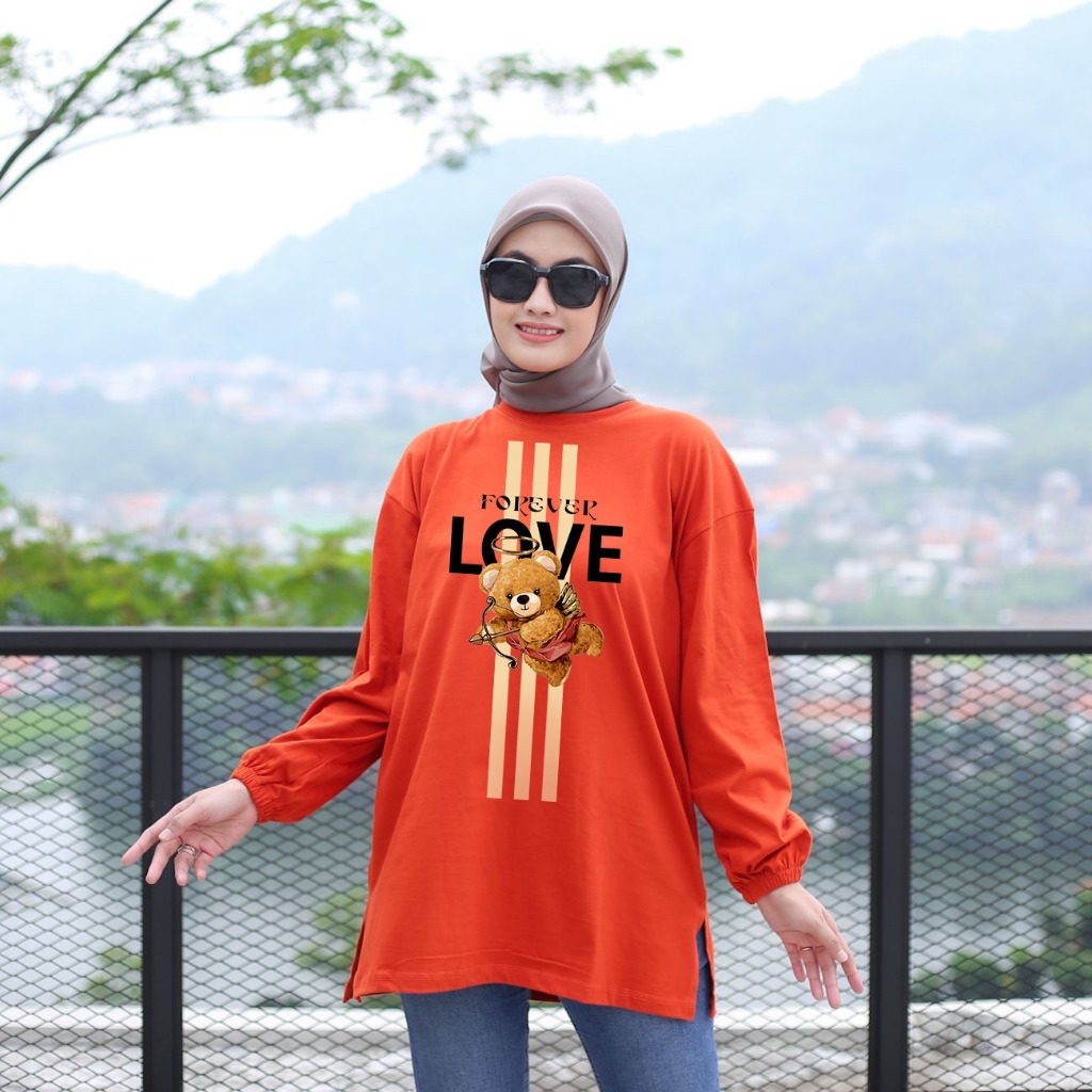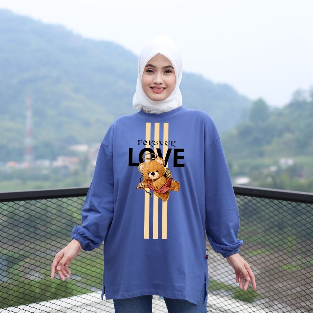 Forever Cloth Kaos Oversize Wanita Lengan Panjang Kerut Bahan Cotton Combed 24s Motif Cupid Bear
