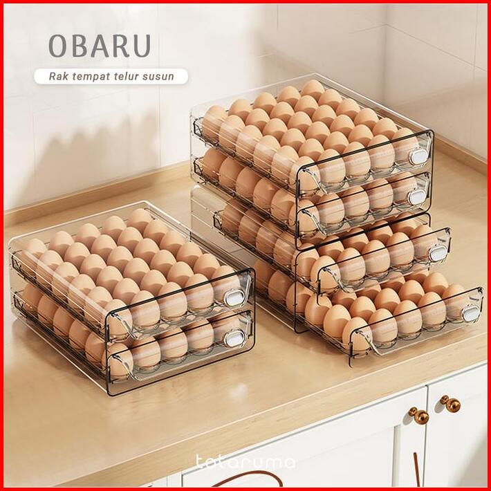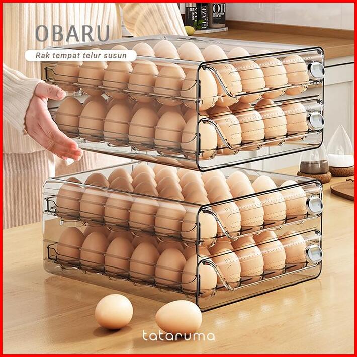 Obaru Rak Tempat Telur Laci Tingkat Egg Storage Box Organizer Kulkas