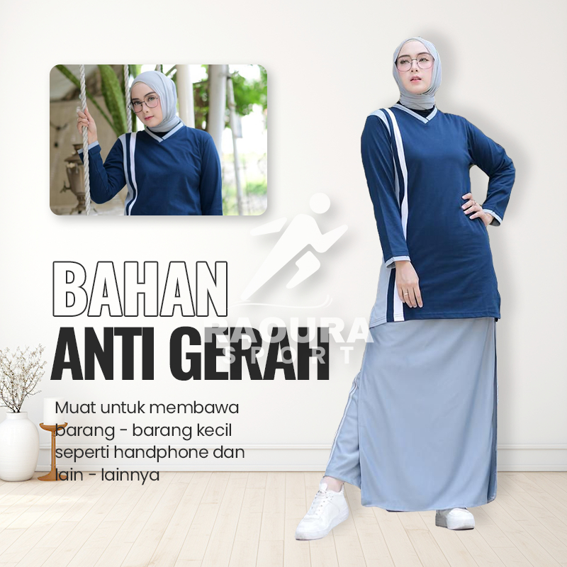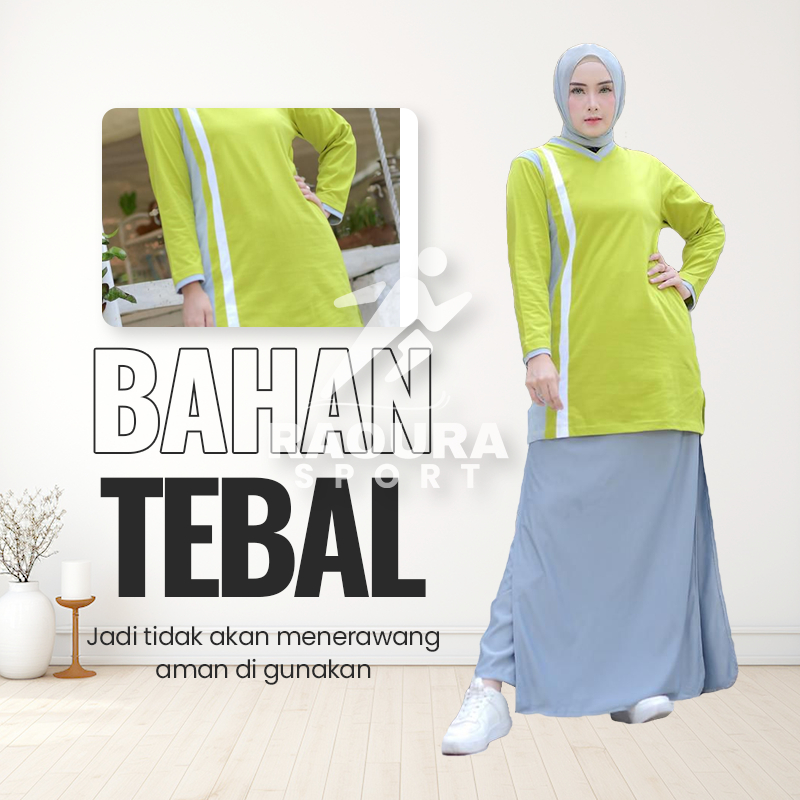 SETELAN TUNIK BAJU OLAHRAGA WANITA MUSLIM ROK CELANA OLAHRAGA WANITA MUSLIMAH ROCELLA 20S