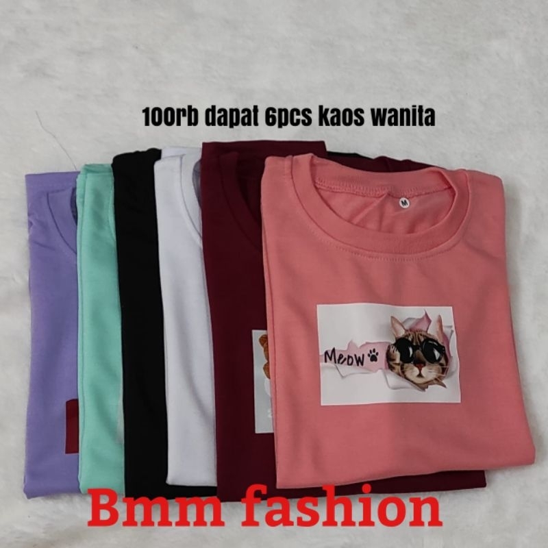 baju kaos wanita lengan pendekk 100rb dapat 6pcs motif kucing meow Bahan Babyterry sudah dapat 6 warna dan 6 motif
