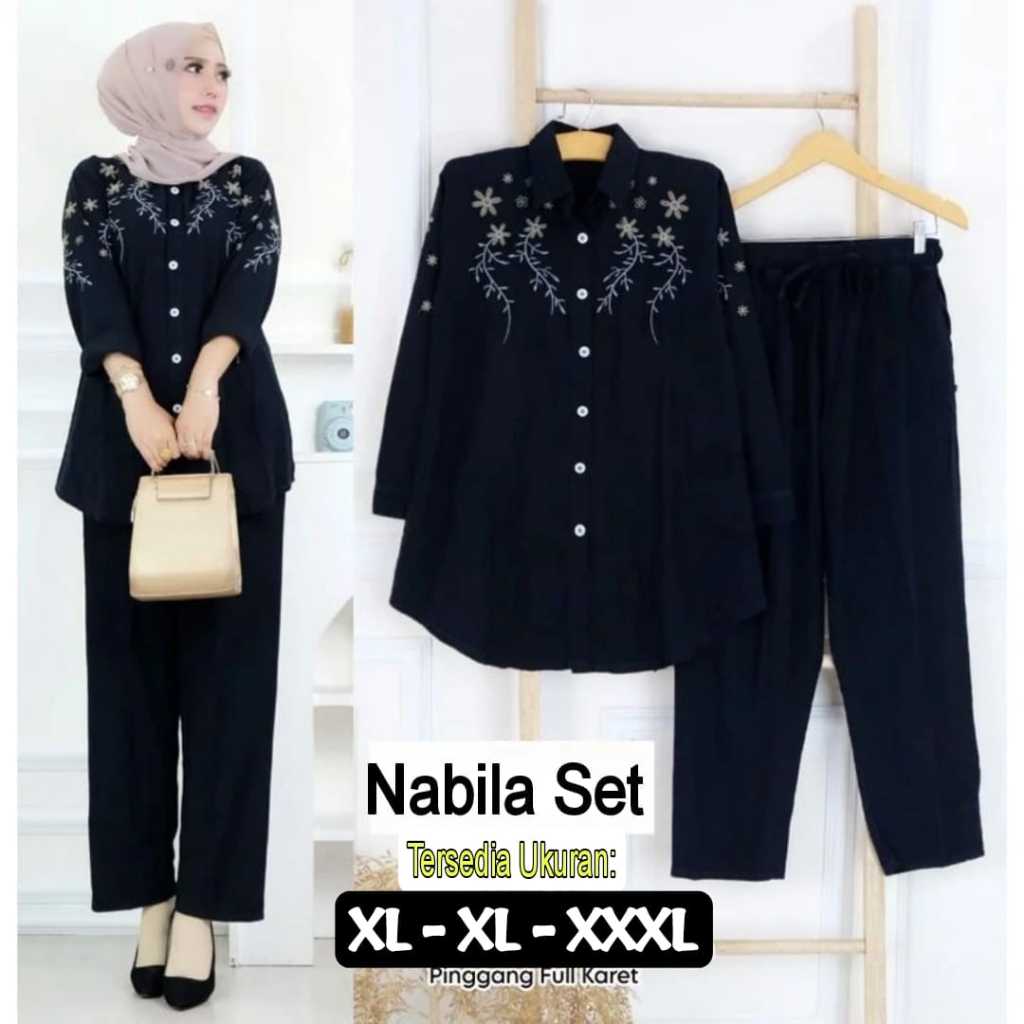 Setelan Wanita Jeans ada juga Jumbo Pakaian Denim One Set Premium Bordir Bunga Perempuan Busui HQ
